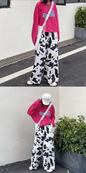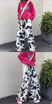 ワイドレッグパンツ レディース秋物韓国ファッショントレンドパターンハイウェストウェストルーズカジュアルスリム オータム ワイドパンツ ボーイズ スタイル ウエスト デーモン453694917