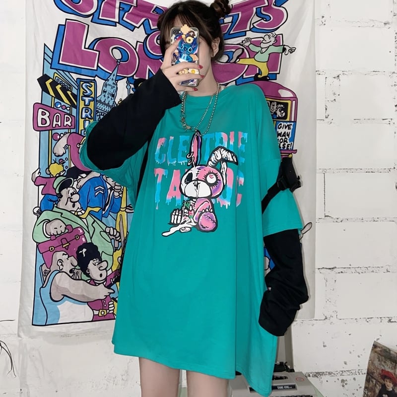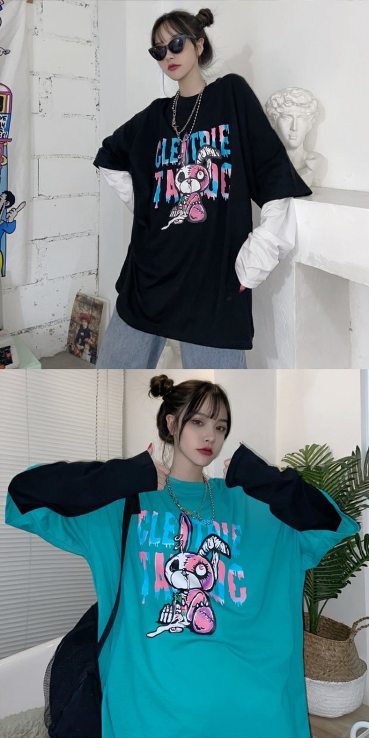 トップス 秋物韓国ファッショントレンドプリント柄ルーズ ロング シャツ オータム Tシャツ スタイル 長袖 デーモン734315181