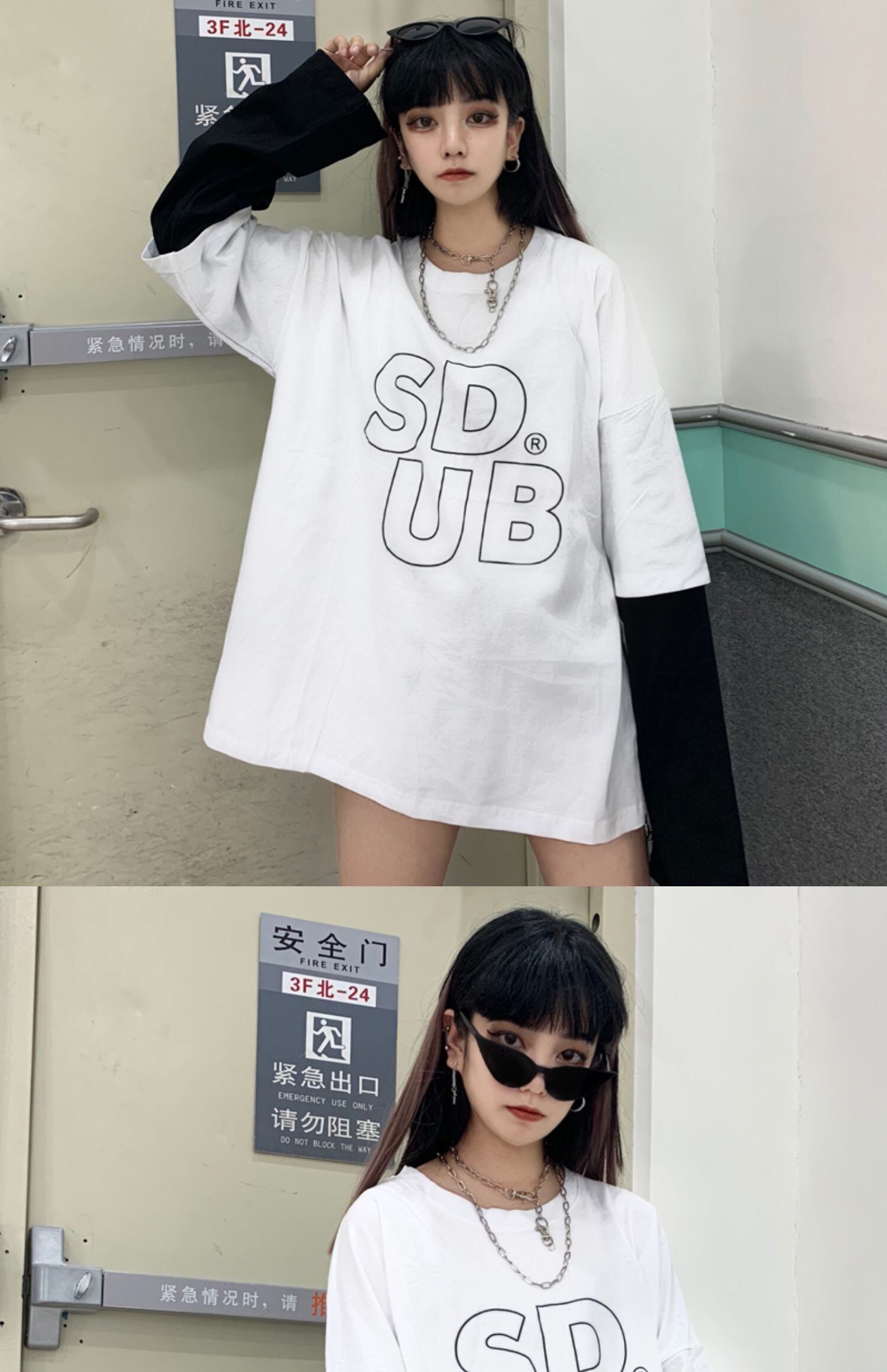 トップス 秋物韓国ファッショントレンドスタンダードプリントルーズTシャツ ロング レトロ オータム ボーイズ スタイル 長袖 デーモン55125140327