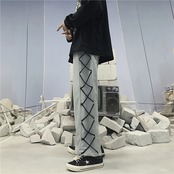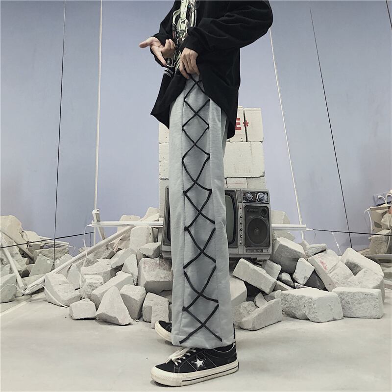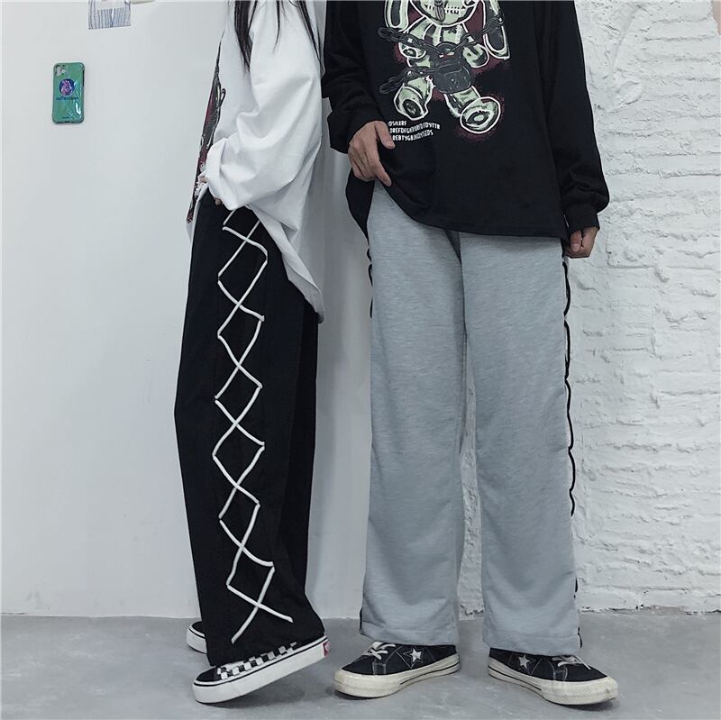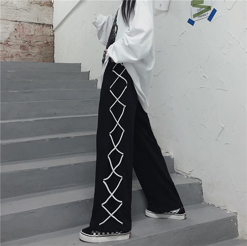 カジュアルパンツ 秋物韓国ファッショントレンドルーズハイウェストウェストブラック オータム ステッチ スタイル ウエスト デーモン22660337594