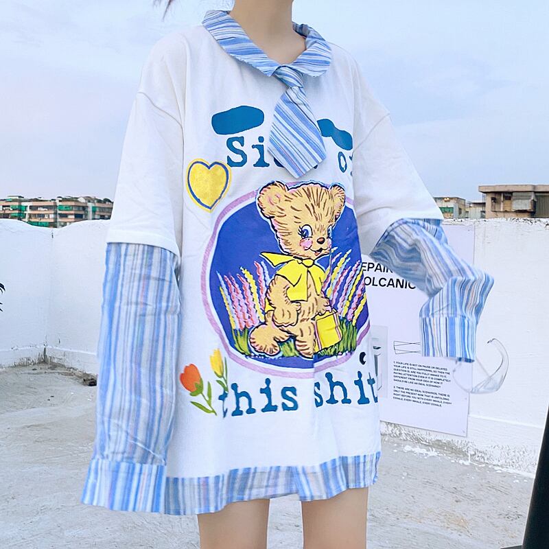 トップス レディース秋物韓国ファッショントレンドスタイルシャツ ルーズ ロング オータム Tシャツ 長袖 デーモン3840632396
