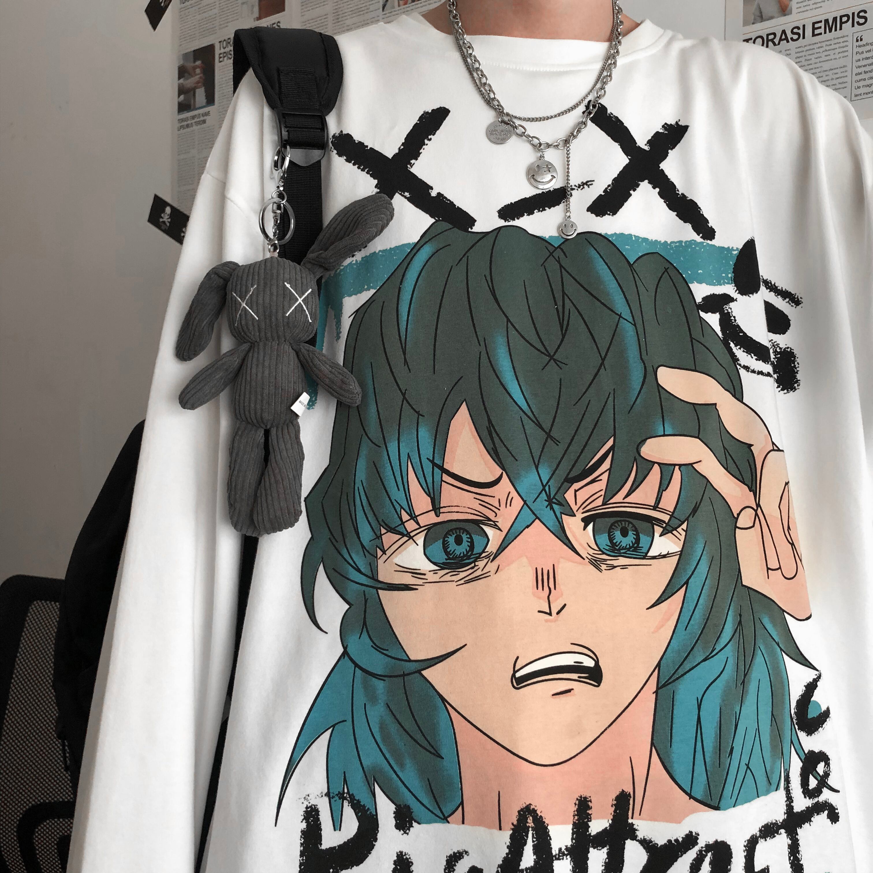秋物トップス 韓国ファッショントレンドプリントラウンドネックルーズ長袖スリーブTシャツ ロング オータム Oネック ボーイズ スタイル デーモン98312851148