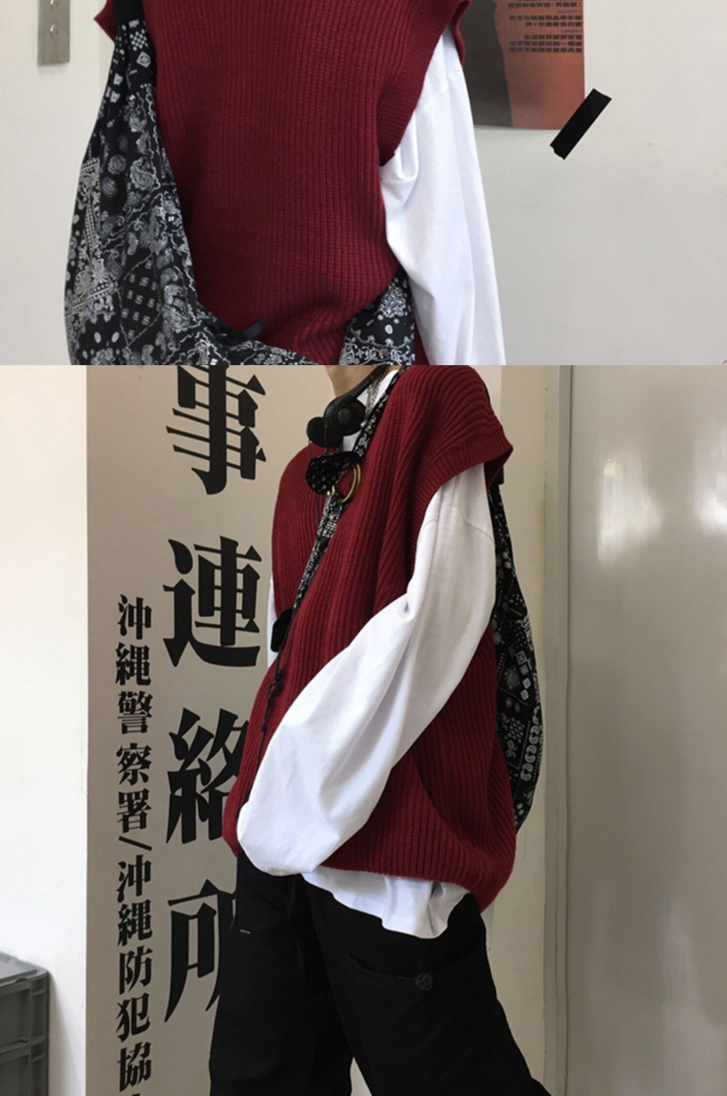 薄手ニットトップス レディース秋物韓国ファッショントレンドVネックルーズセーター オータム ボーイズ スタイル デーモン13362834728