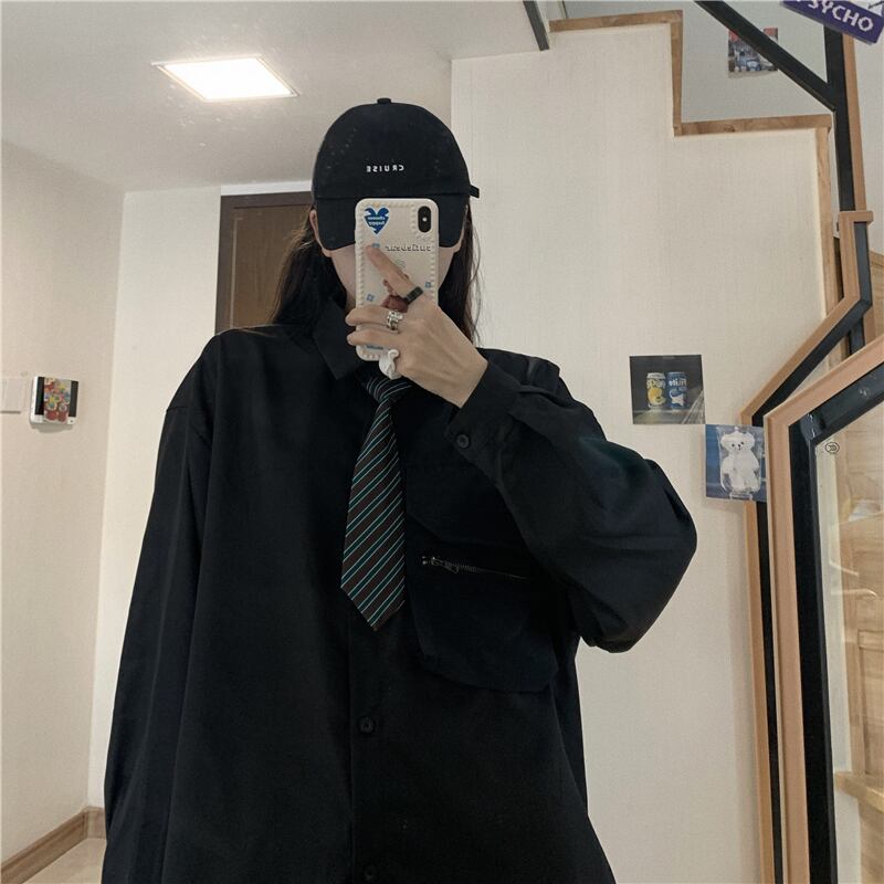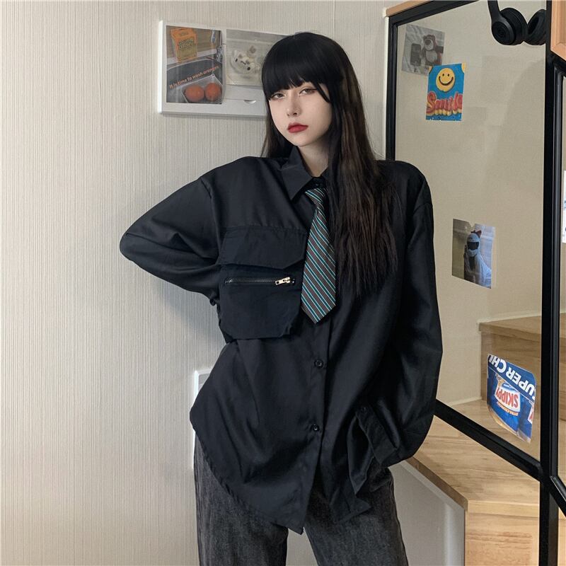 シャツ 秋物レディース韓国ファッショントレンドブラックルーズトップス コート ロング オータム スタイル 長袖 デーモン14635187335