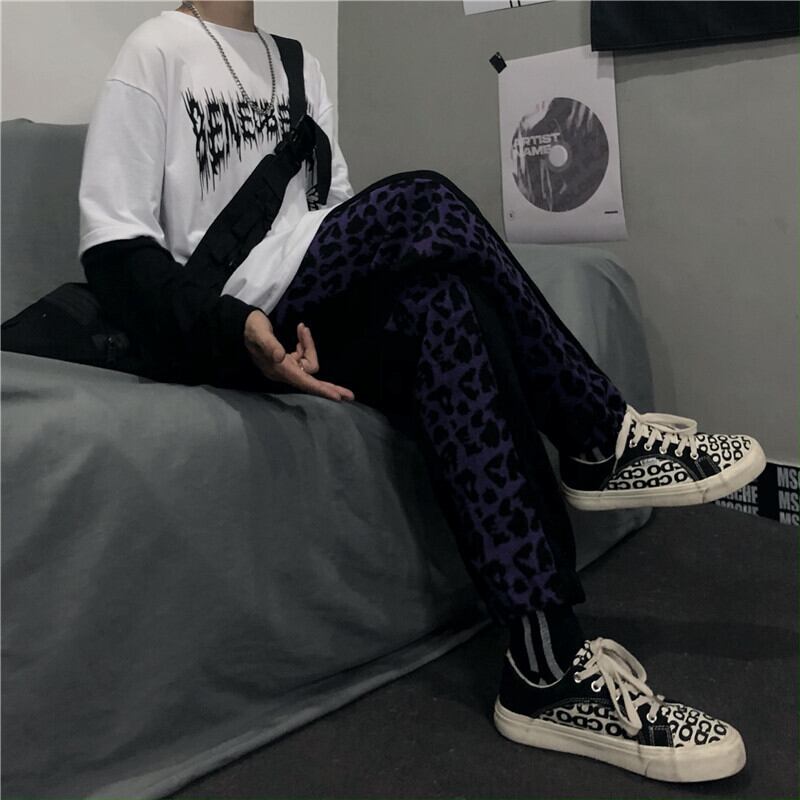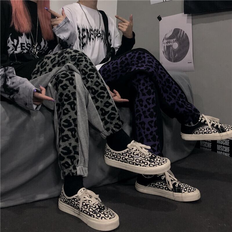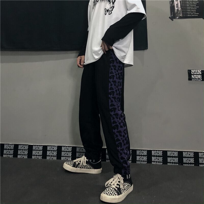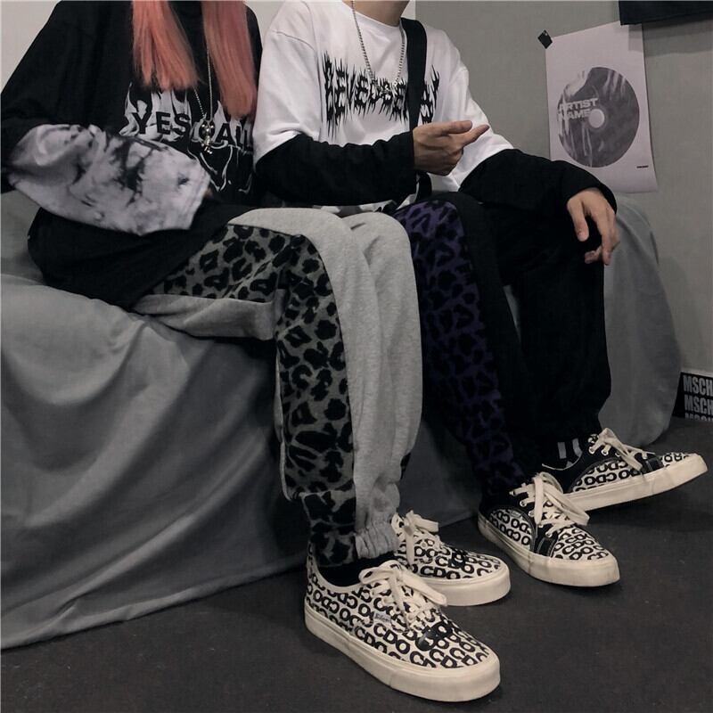 パンツ レディース韓国ファッショントレンドレオパードパターンルーズハイウェストウェストグレー ストリート ステッチ ボーイズ スタイル ウエスト デーモン40898571618