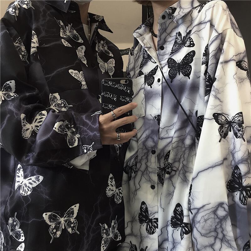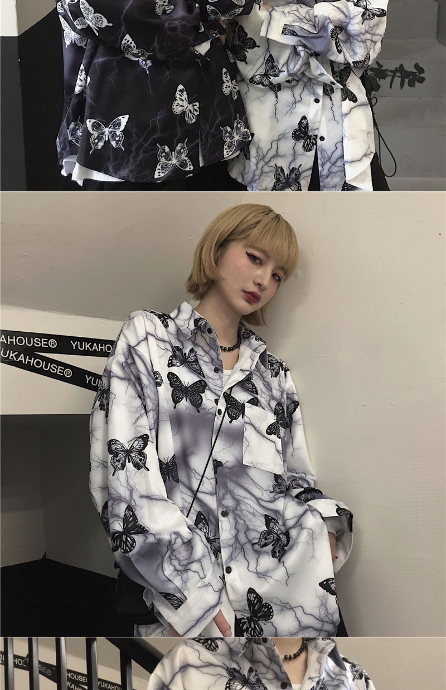 シャツ秋物韓国ファッショントレンドスタイルプリントルーズカジュアルトップス ロング 原宿 オータム 長袖 デーモン10062723817