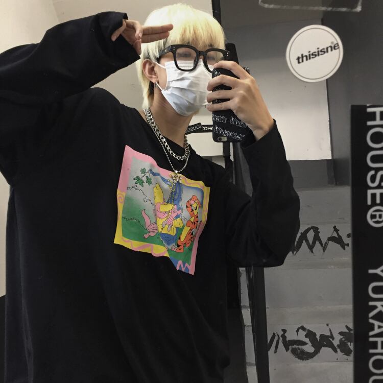 トップス 秋物韓国ファッショントレンドスタンダードプリントルーズゆったりシャツ Tシャツ ロング レトロ オータム ボーイズ スタイル 長袖 デーモン60074170730