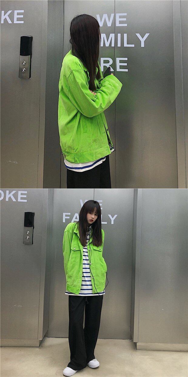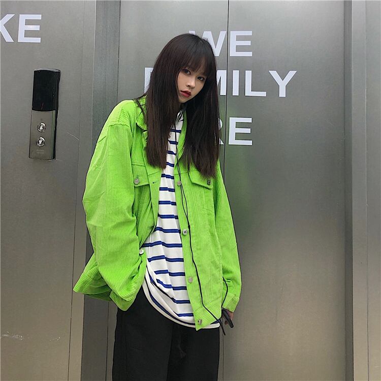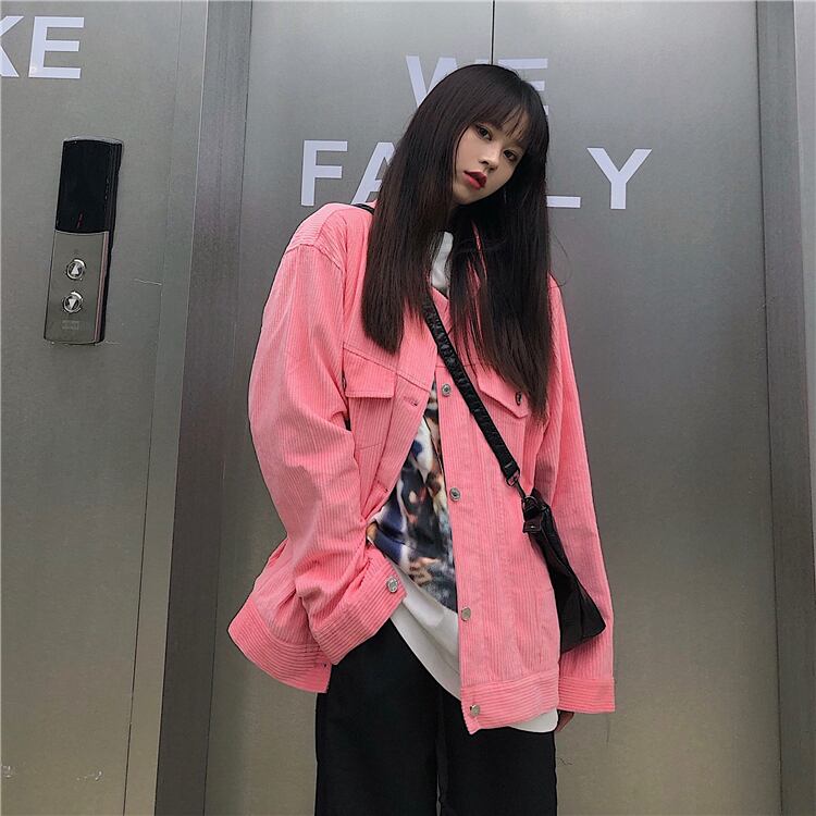 秋物ジャケット レディース韓国ファッショントレンドコーデュロイルーズ薄手シャツ ロング オータム ボーイズ スタイル 長袖 デーモン16004984023