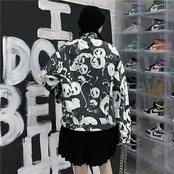 ジャケット レディース秋物韓国ファッショントレンドスタイルプリント柄ルーズクロップドトップス 原宿 オータム デーモン68805161937