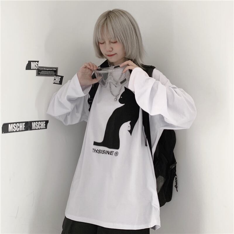 秋物ジャケット レディース韓国ファッショントレンドダークプリント柄ゆったりシャツ ルーズTシャツ ロング オータム ボーイズ スタイル 長袖 デーモン27472346502