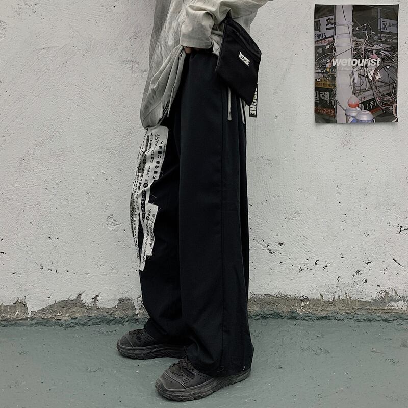 パンツ レディース韓国ファッショントレンドワイドレッグブラックルーズハイウェストウェストカジュアル ストリート ワイドパンツ ボーイズ スタイル ウエスト デーモン56550216251