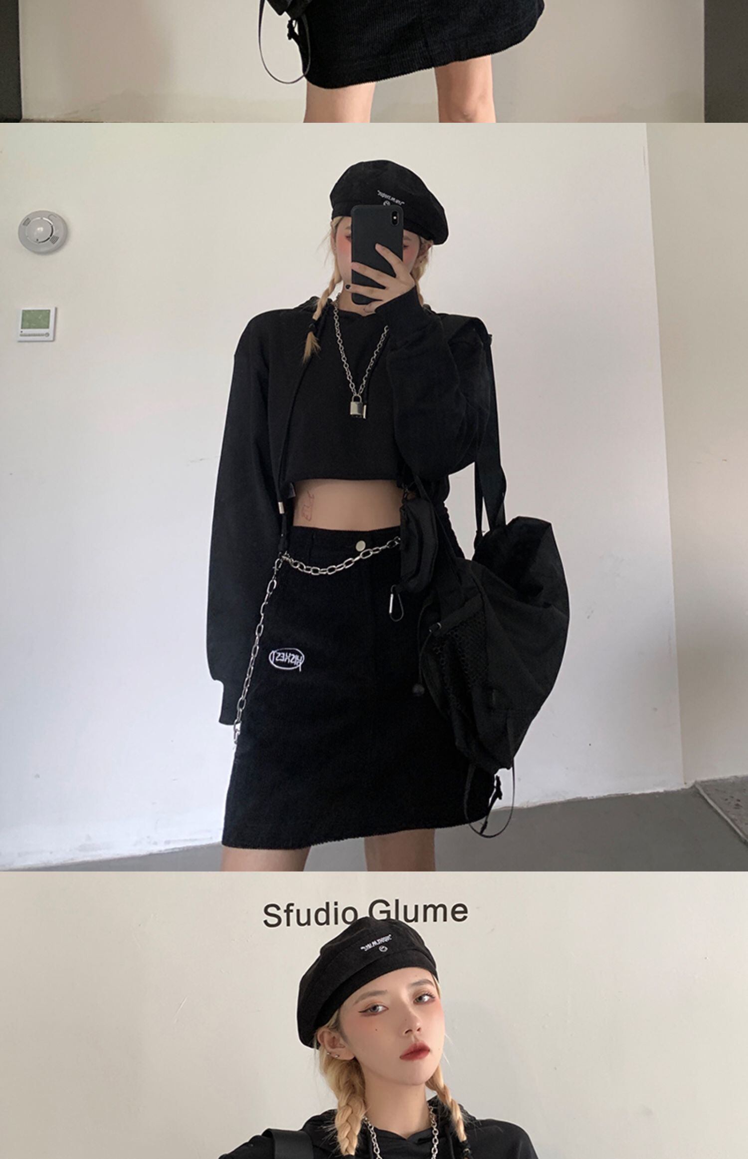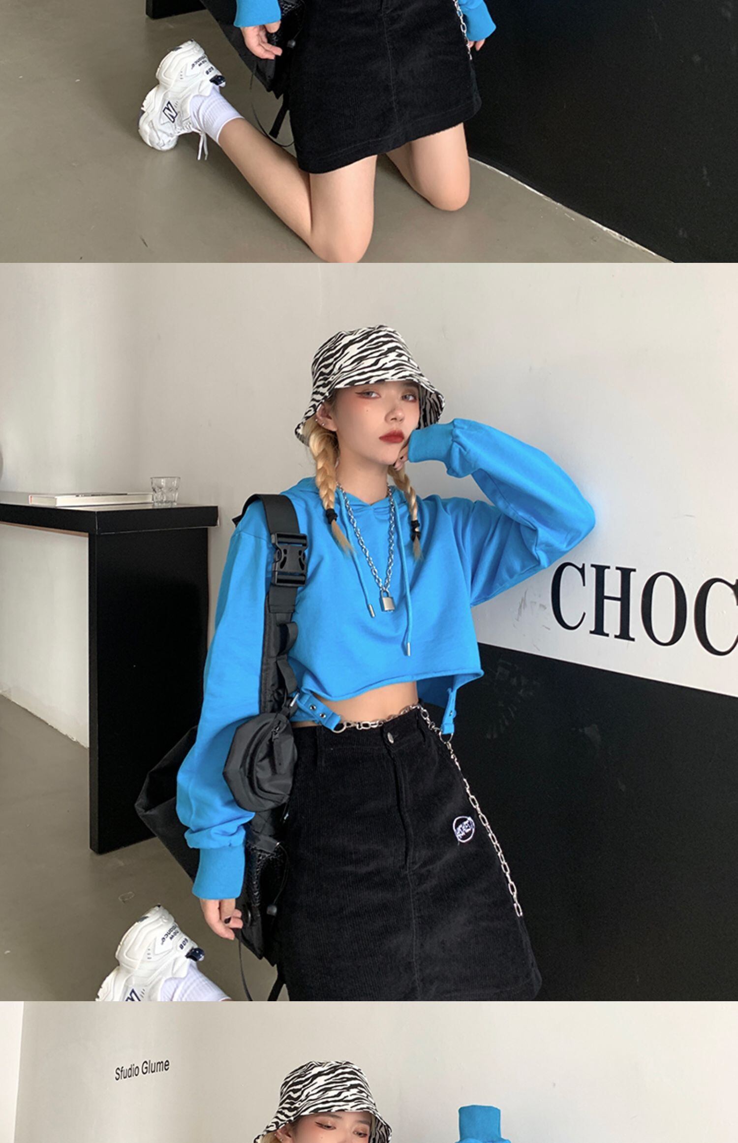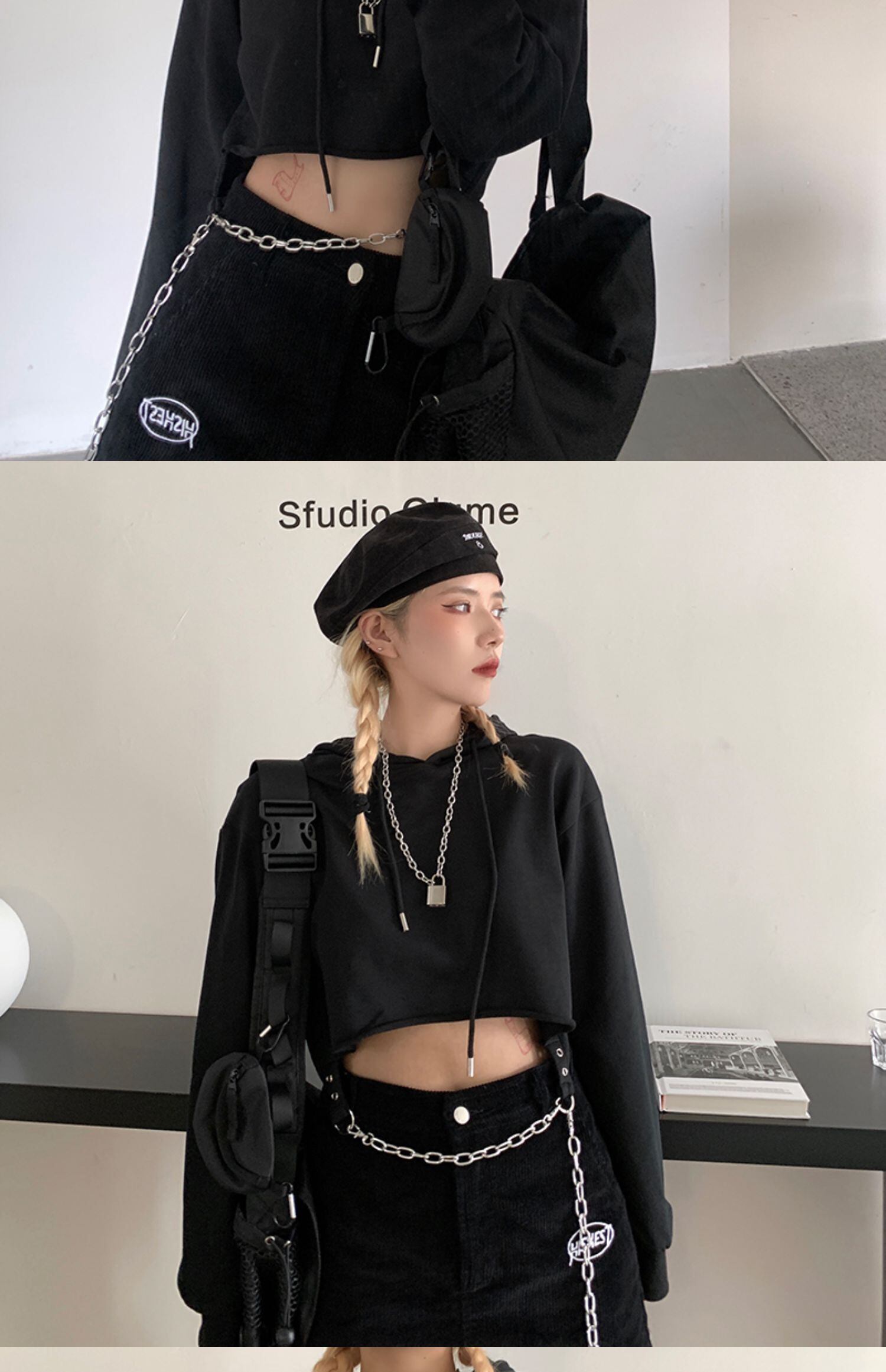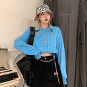 ショートトップス 秋物韓国ファッショントレンドスタイルチェーン セーター ルーズジャケット ロング 原宿 オータム 長袖 デーモン12146142361