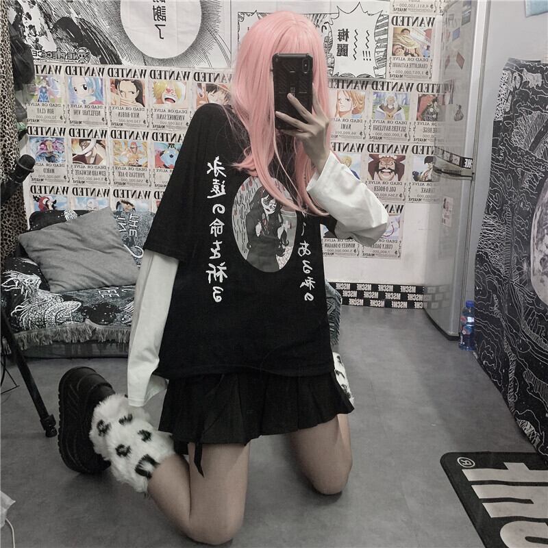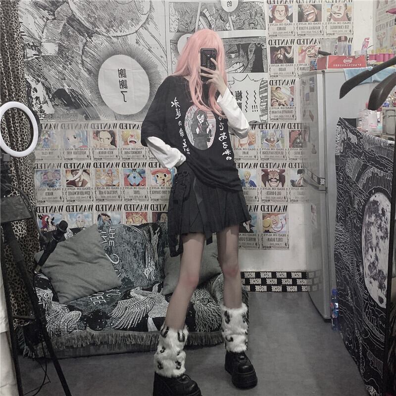 トップス レディース秋物韓国ファッショントレンドダークプリントルーズ長袖スリーブTシャツ ロング オータム ボーイズ スタイル デーモン13045901921