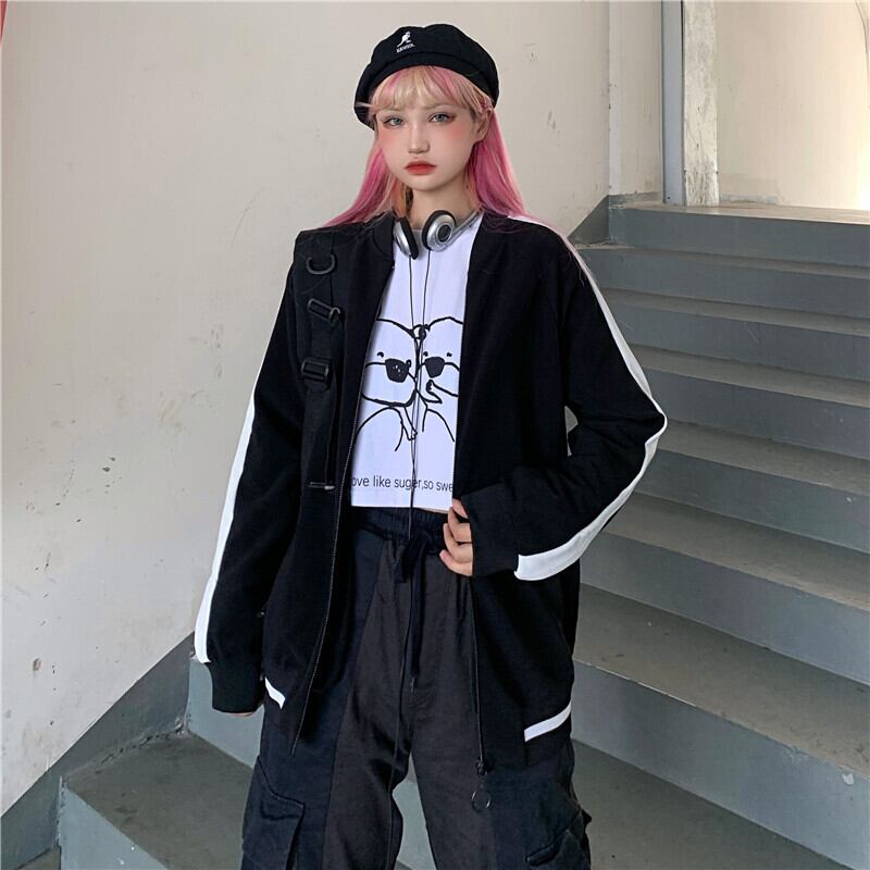 コート レディース秋物韓国ファッショントレンドスタンダードジッパージャケット ルーズトップス ロング レトロ オータム ステッチ スタイル 長袖 デーモン5857222930