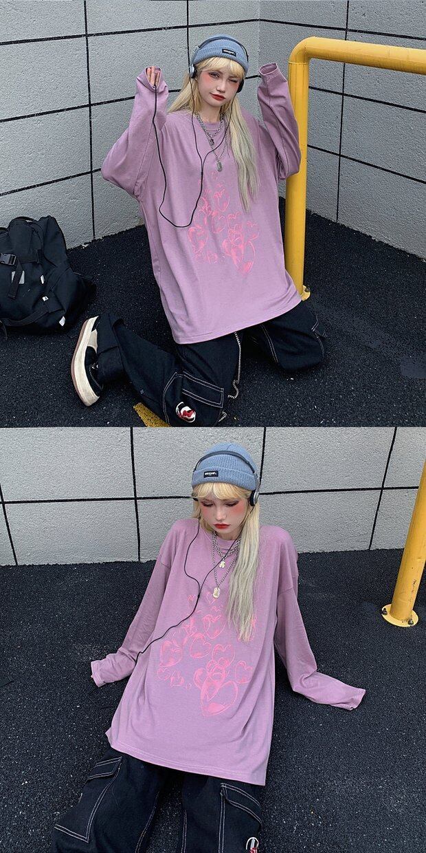 トップス 秋物韓国ファッショントレンドスタイルプリントゆったりシャツ ルーズTシャツ ロング長袖 原宿 オータム 長袖 デーモン8649662378