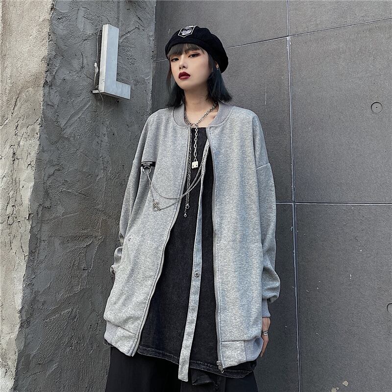 コート レディース秋物韓国ファッショントレンドジッパーセーター ルーズトップス ロング 原宿 オータム スタイル 長袖 デーモン49430994958