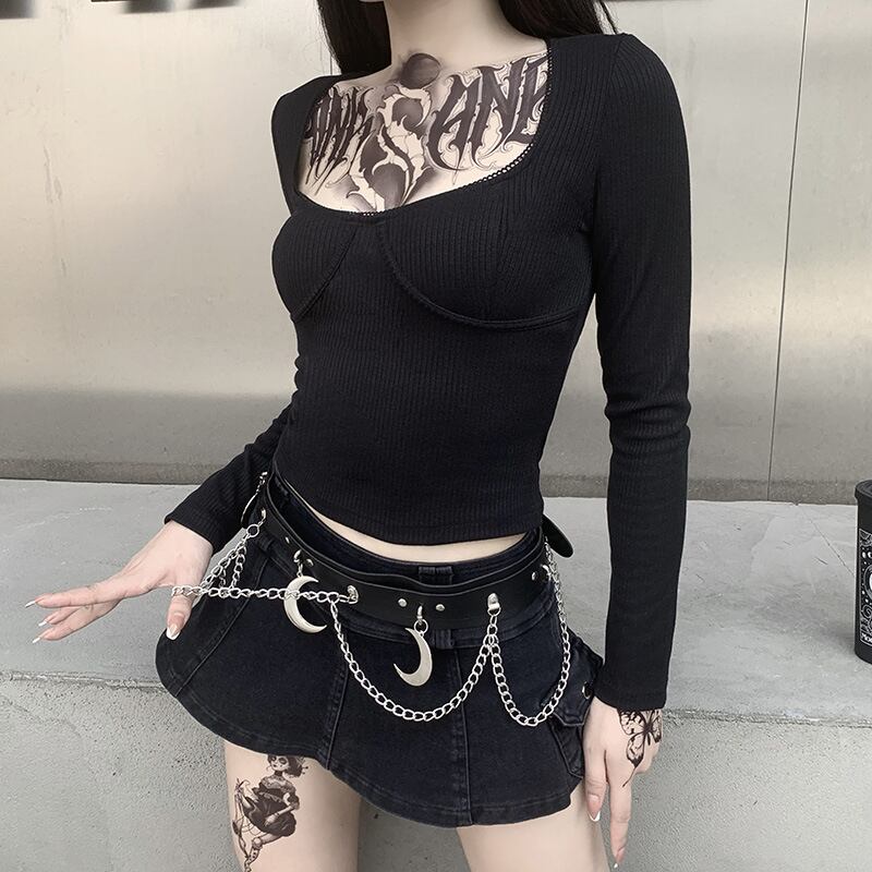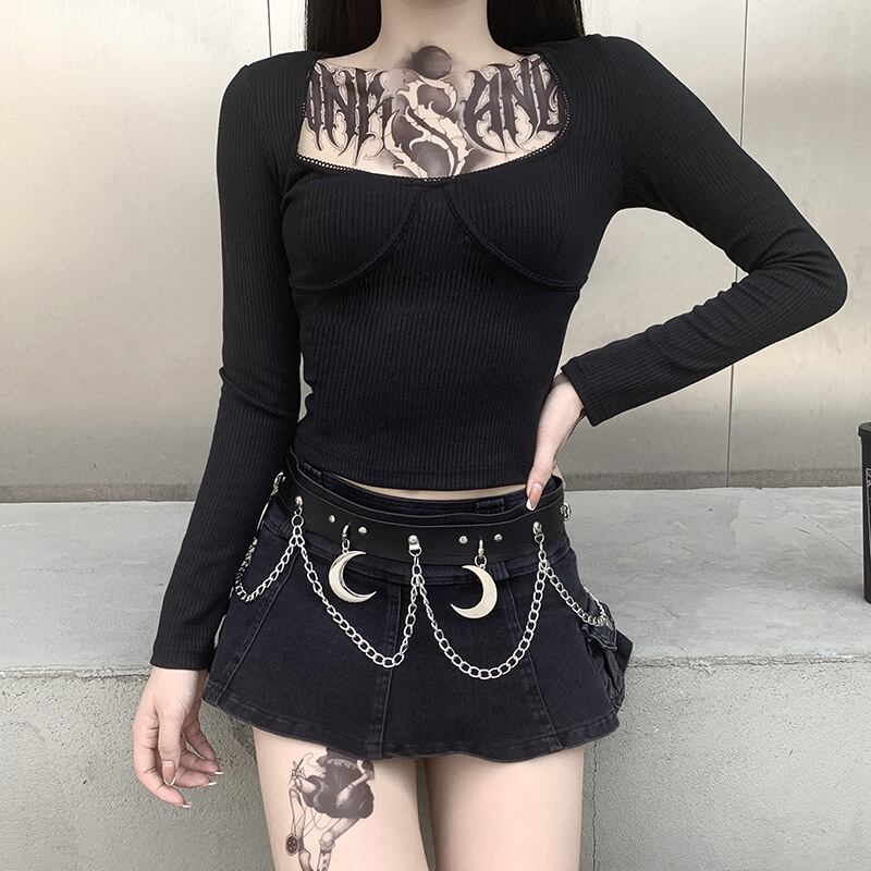 秋物Tシャツトレンドカラーレーストップス ロング オータム スクウェア 長袖 YU24639391645