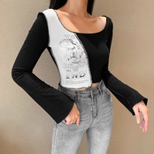 プリントトップス レディーストレンドレースカジュアル ストリート ヨーロピアン ステッチ YU65189949781