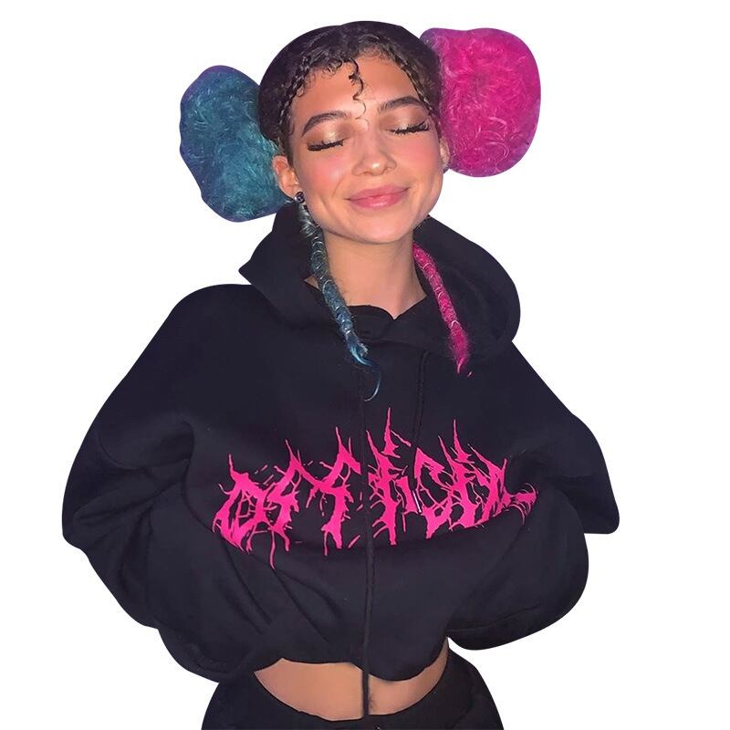 プリント秋物ウィンターフードセーター レディーストレンドブラックラウンドネック ストリート オータム 冬物 Oネック ヨーロピアン YU97014232594