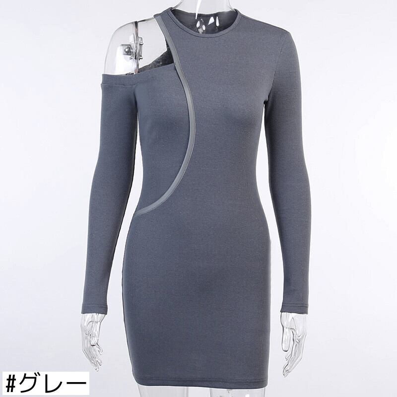 ストライプワンピーストレンドスリム オフショルダー ヨーロピアン ステッチ YU78391303491