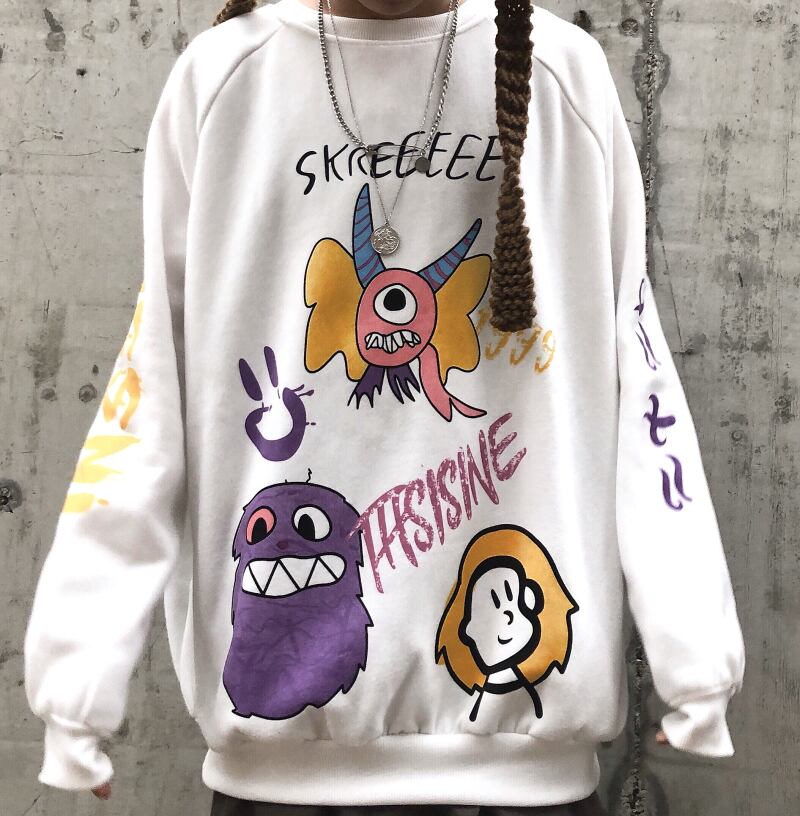 セーター レディース秋物ウィンター韓国ファッショントレンドプリント厚みルーズジャケット ロング オータム 冬物 ボーイズ スタイル 長袖 デーモン39733862143