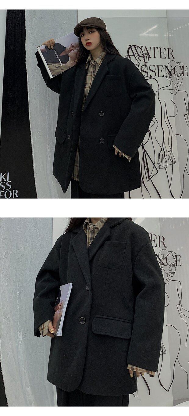 秋物韓国ファッショントレンドブラックルーズカジュアルジャケット レディース オータム ボーイズ スタイル デーモン60651476111