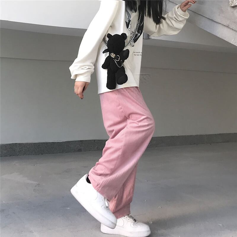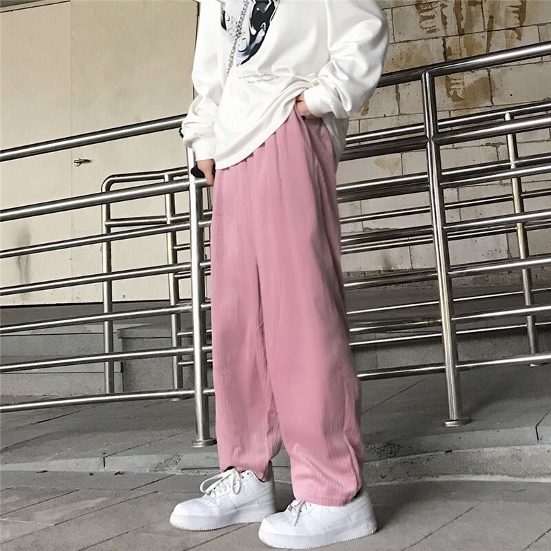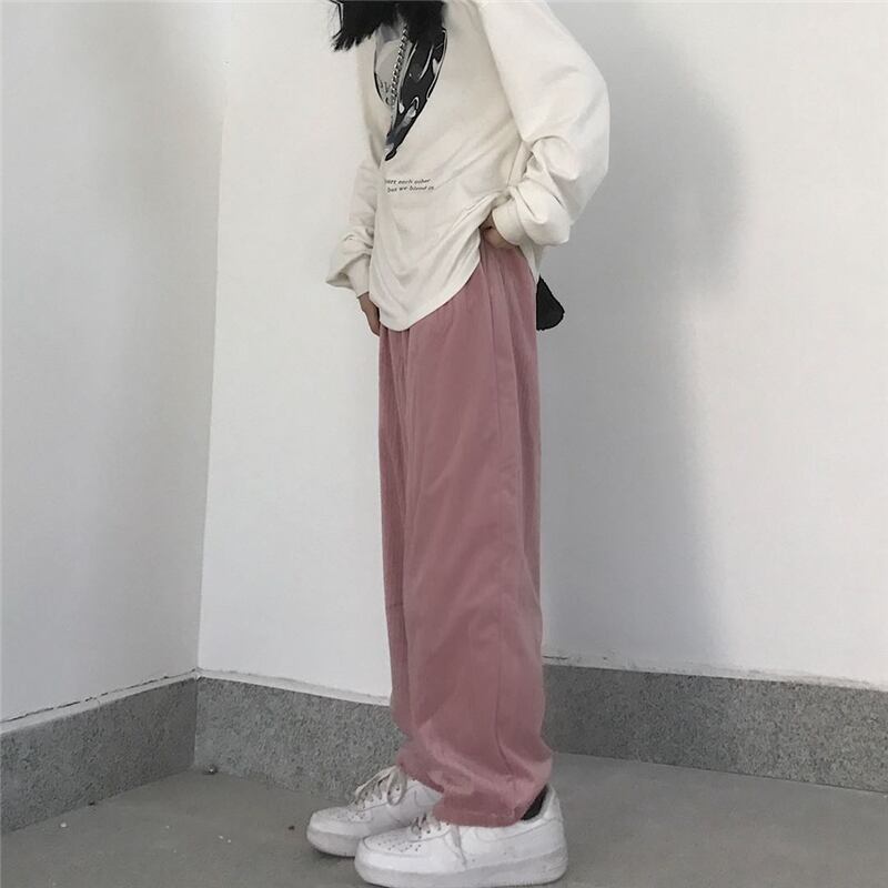パンツ レディース韓国ファッショントレンドコーデュロイワイドレッグルーズハイウェストウェスト ピンク ワイドパンツ ボーイズ スタイル ウエスト デーモン6943992589