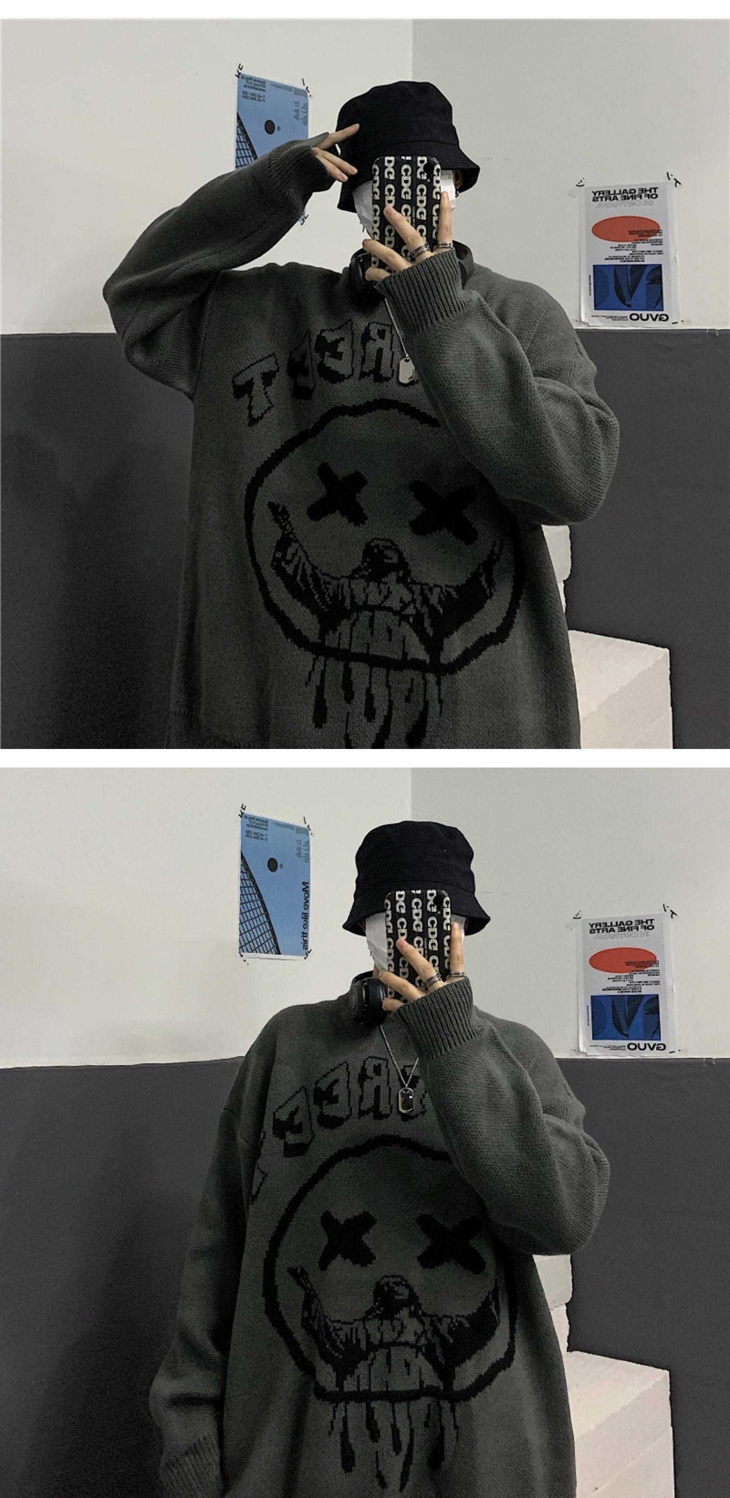 秋物ウィンターセーター レディース韓国ファッショントレンドダークジャカードルーズプルオーバー ウールコート オータム 冬物 スタイル デーモン92856560747