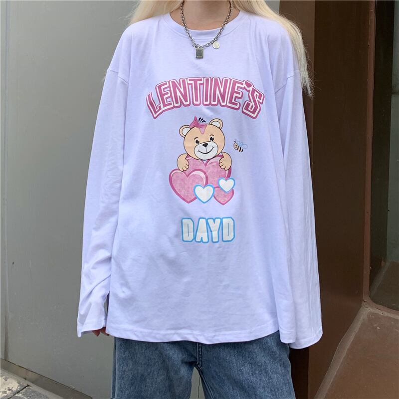 トップス レディース秋物韓国ファッショントレンドスタイルプリント柄ルーズ長袖スリーブTシャツ ロング 原宿 オータム ボーイズ デーモン89601776945