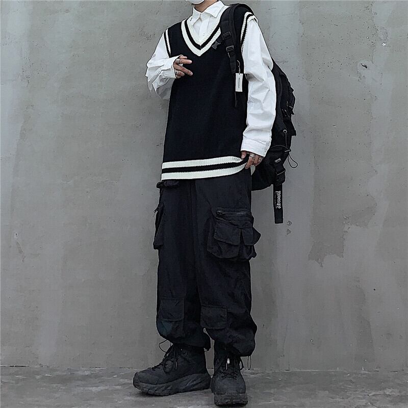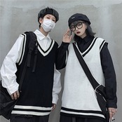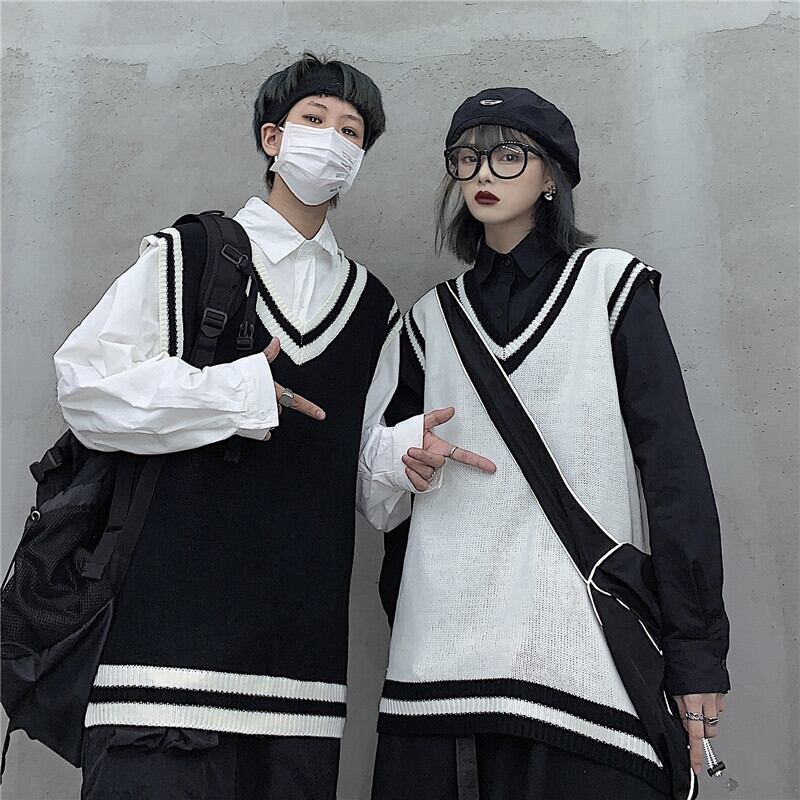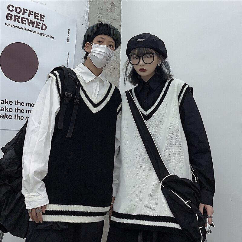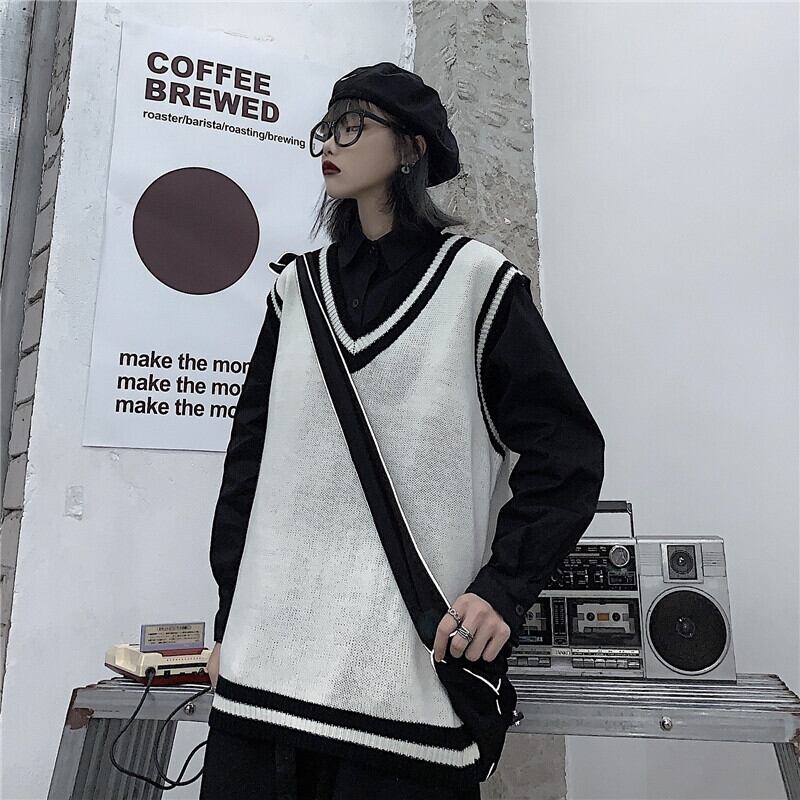 Vネックセーター レディース秋物韓国ファッショントレンドスタイルルーズノースリーブウールジャケット 原宿 オータム ボーイズ デーモン11079915501