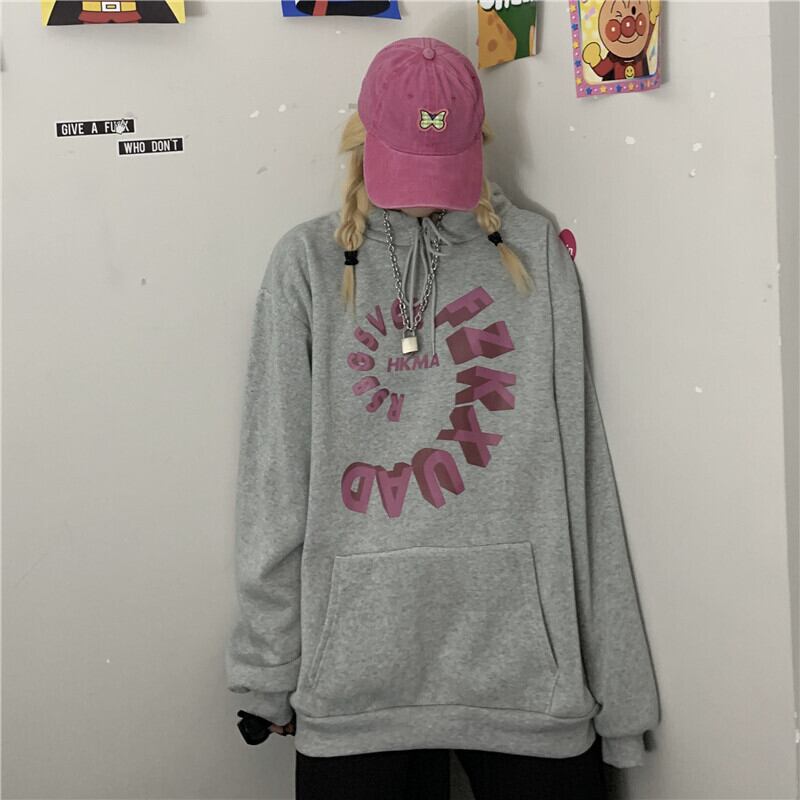 セーター 秋物韓国ファッショントレンドプリントルーズフードジャケット レディース ロング オータム スタイル 長袖 デーモン66816851309