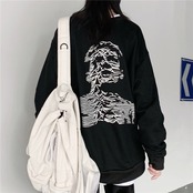 セーター レディース秋物ウィンター韓国ファッショントレンドダークプリント柄ルーズラウンドネック厚みジャケット ロング オータム 冬物 Oネック ボーイズ スタイル 長袖 デーモン14115342079