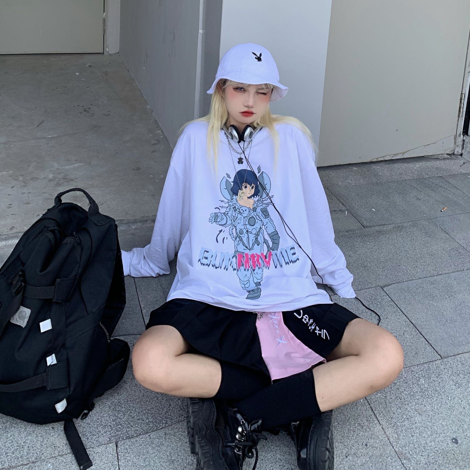 スタイルジャケット 韓国ファッショントレンドプリントルーズプルオーバー 長袖スリーブセーター ロング 原宿 デーモン70342616717