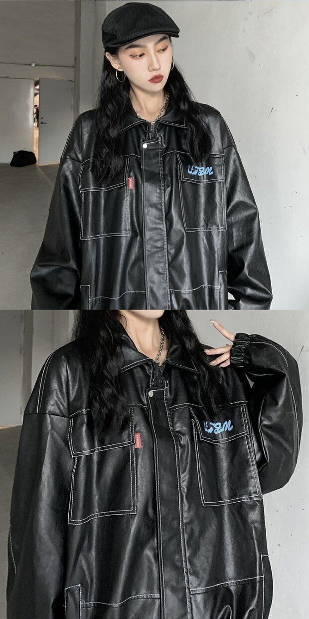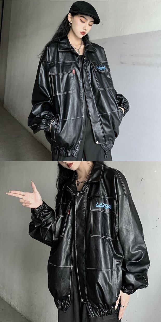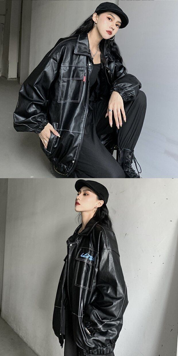 ジャケット レディース秋物ウィンター韓国ファッショントレンドスタンダードブラックルーズカジュアルレザー レトロ オータム 冬物 ボーイズ スタイル デーモン8675900297