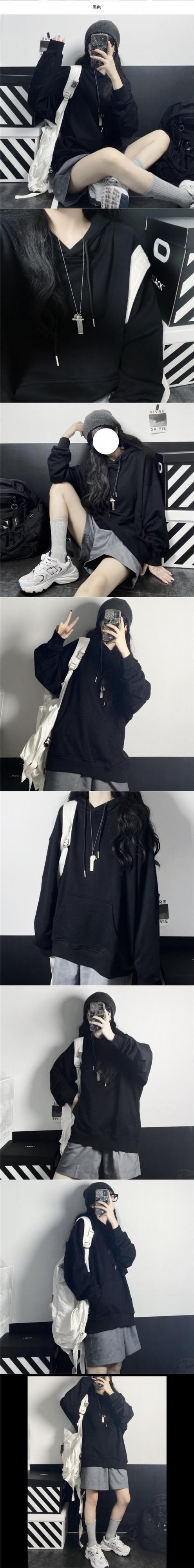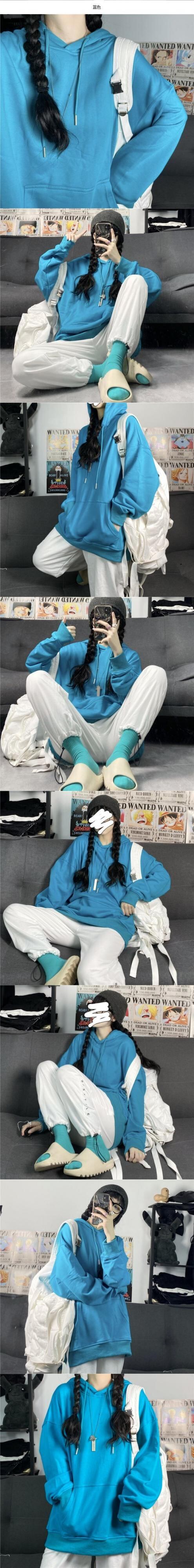フードセーター 秋物ウィンター韓国ファッショントレンドスタイルソリッド カラー厚みルーズジャケット ロング 原宿 オータム 冬物 ソリッドカラー 長袖 デーモン57787921041