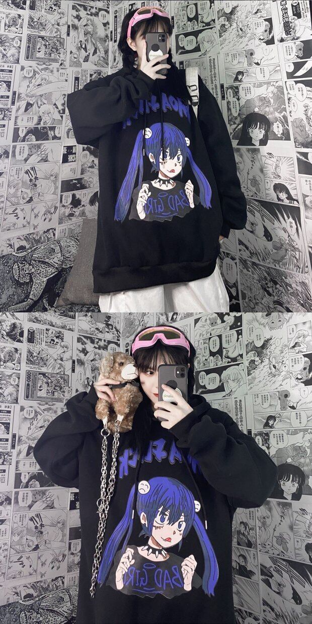 フードセーター レディース秋物ウィンター韓国ファッショントレンドプリントルーズ厚みジャケット オータム 冬物 スタイル デーモン51250302120