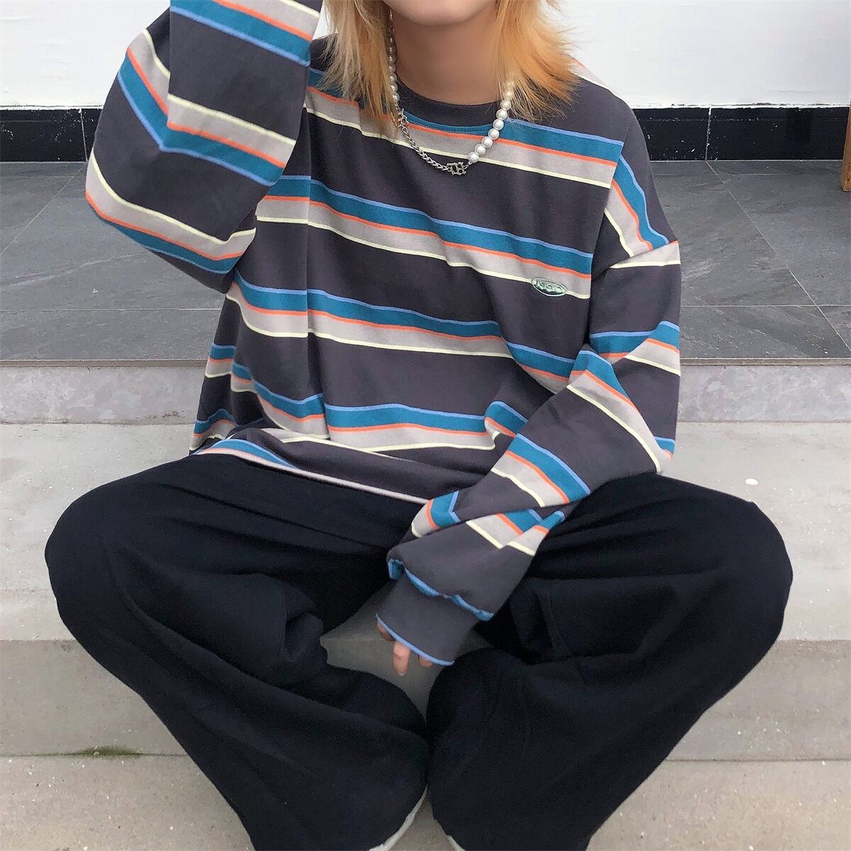 セーター 秋物レディース韓国ファッショントレンドスタイルストライプルーズプルオーバー トップス ロング 原宿 オータム 長袖 デーモン26246153782