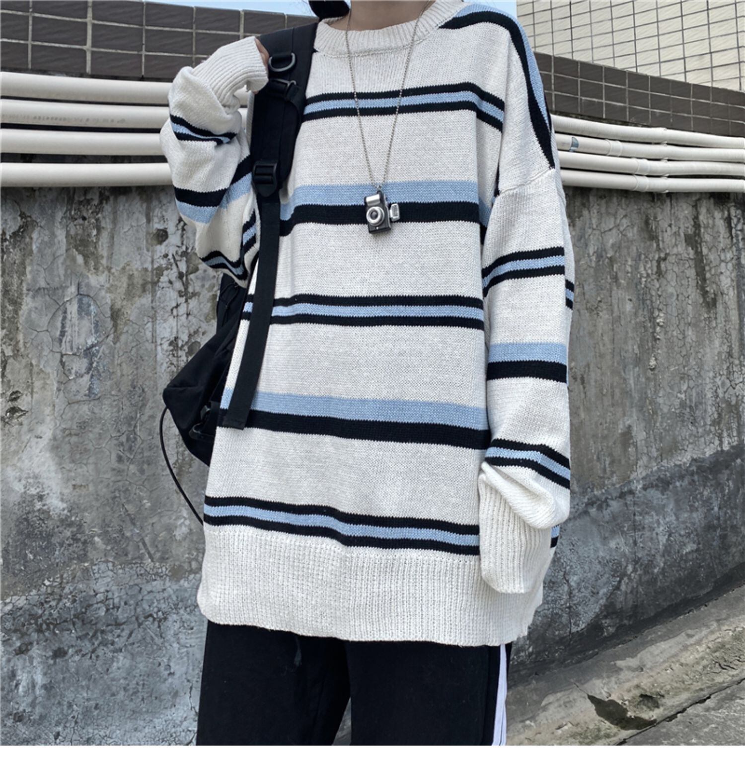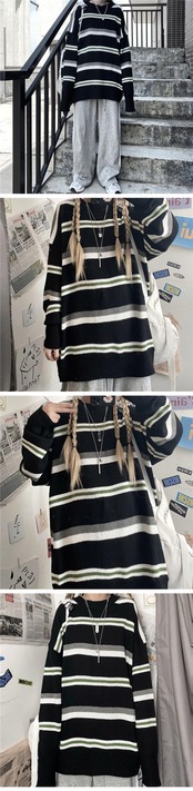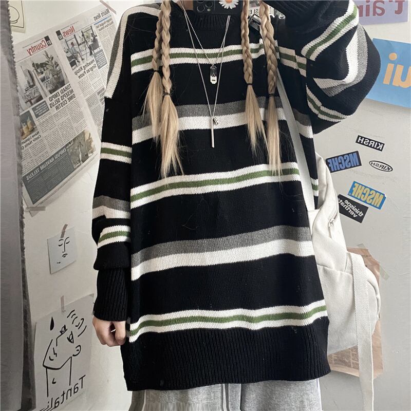 セーター レディース秋物韓国ファッショントレンドスタンダードストライプルーズニットコート ロング レトロ オータム スタイル 長袖 デーモン97548407136