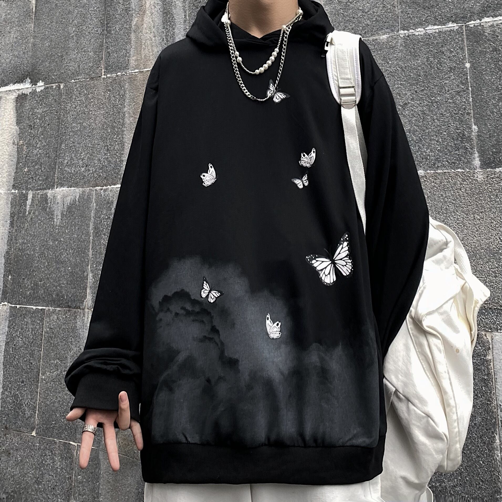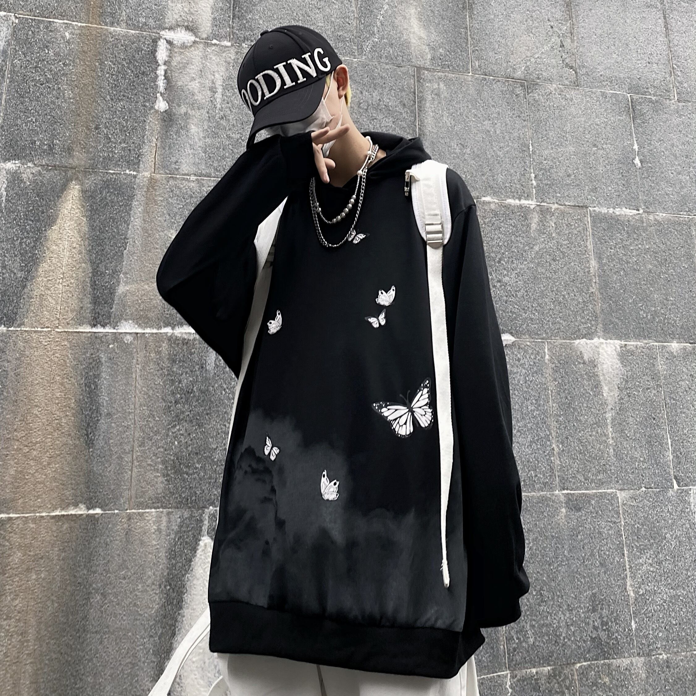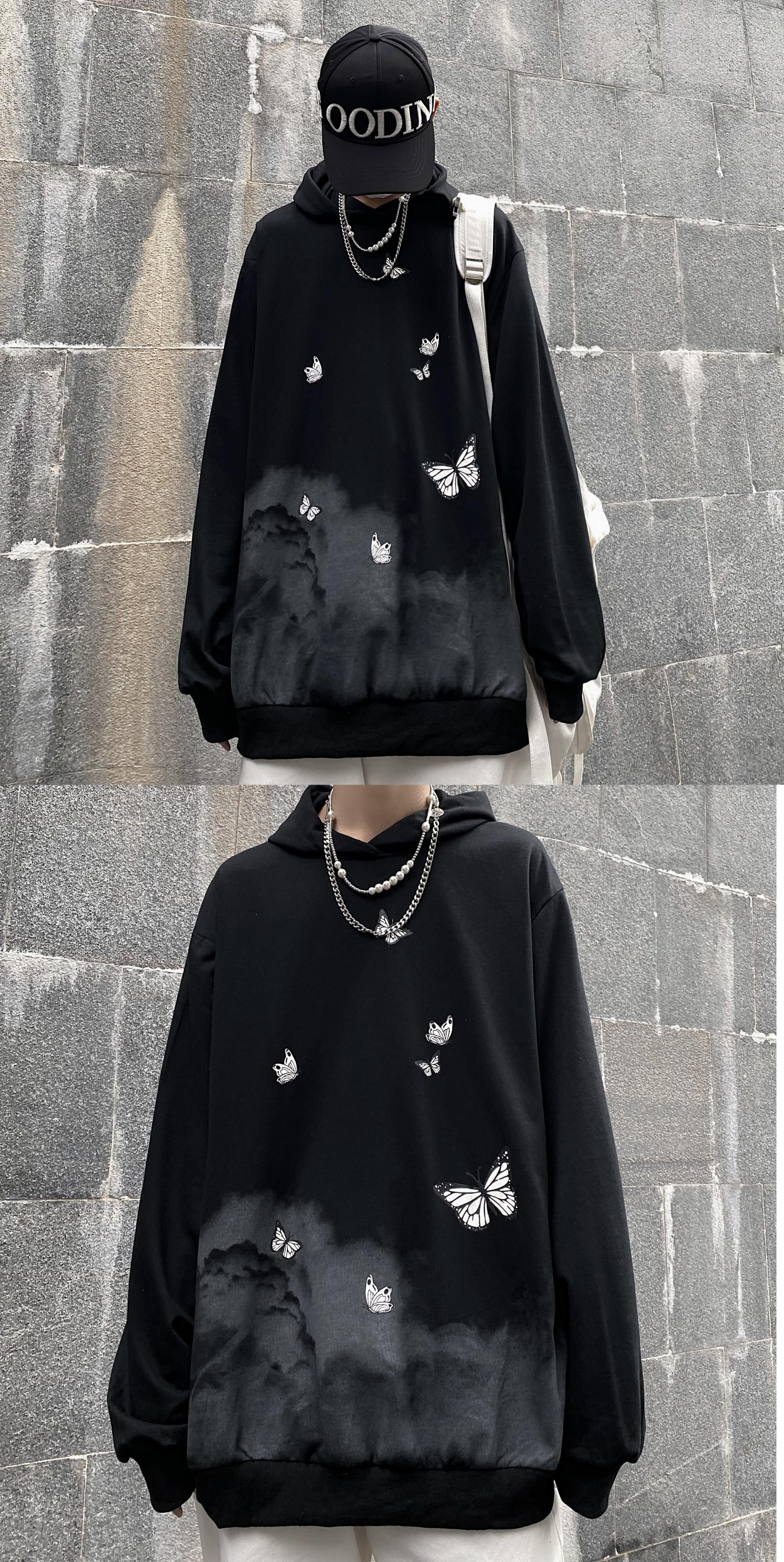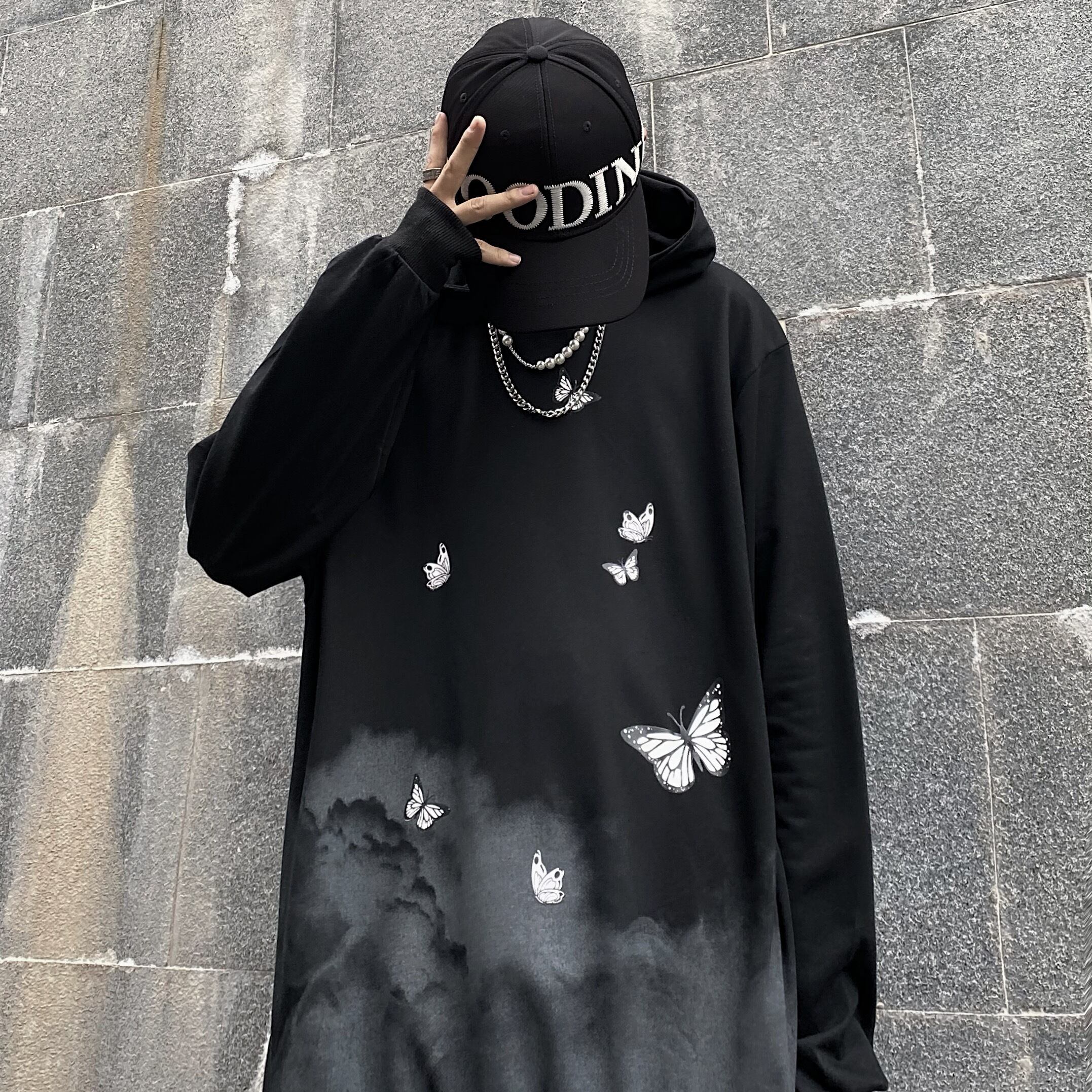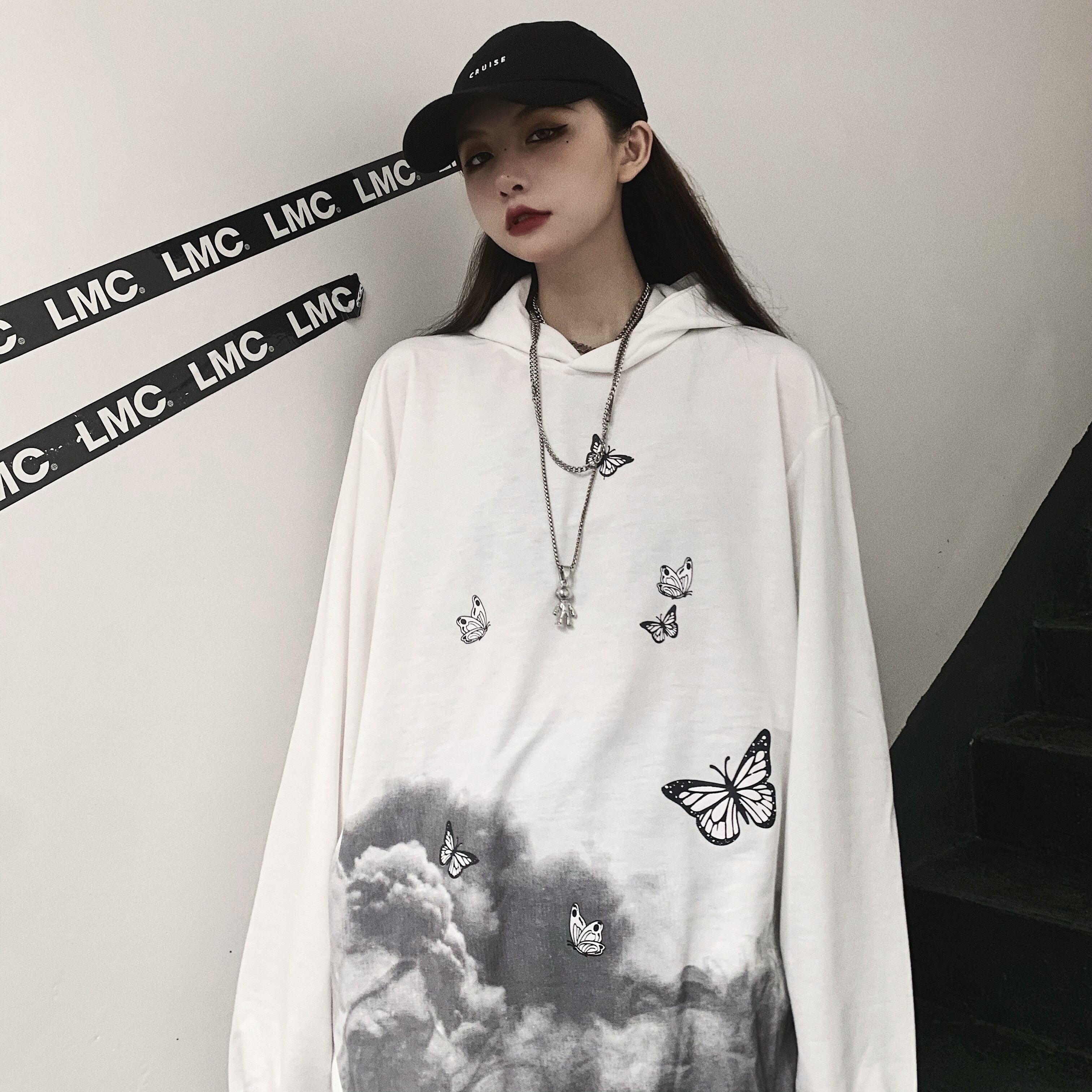 秋物セーター レディース韓国ファッショントレンドスタイルButterflyデザイン プリント柄ルーズフードジャケット ロング 原宿 オータム 長袖 デーモン76617105100