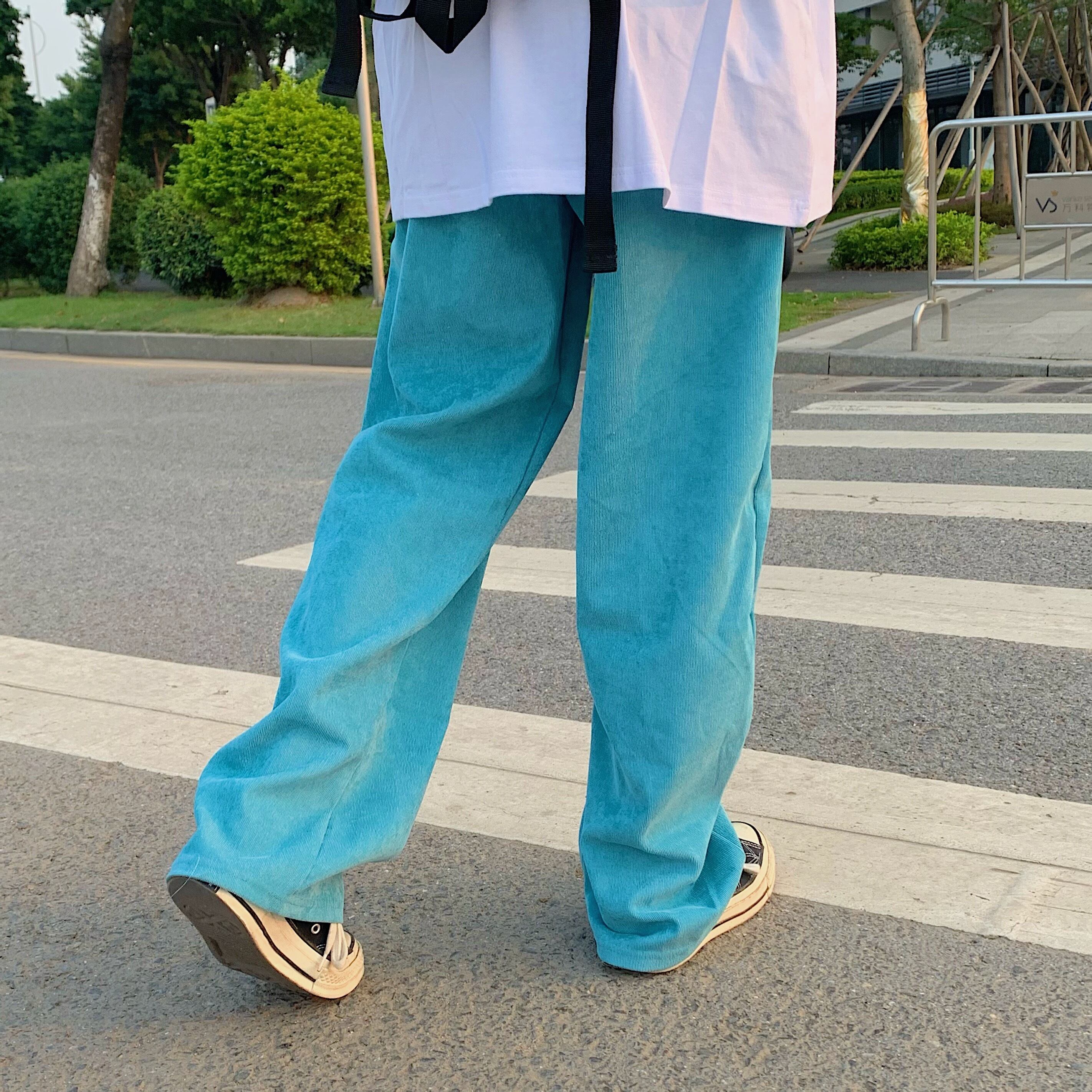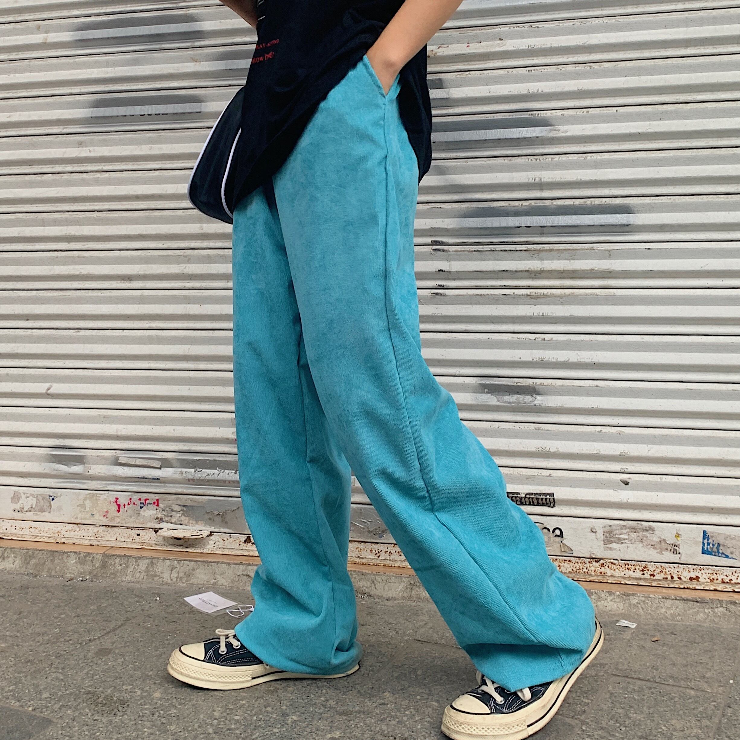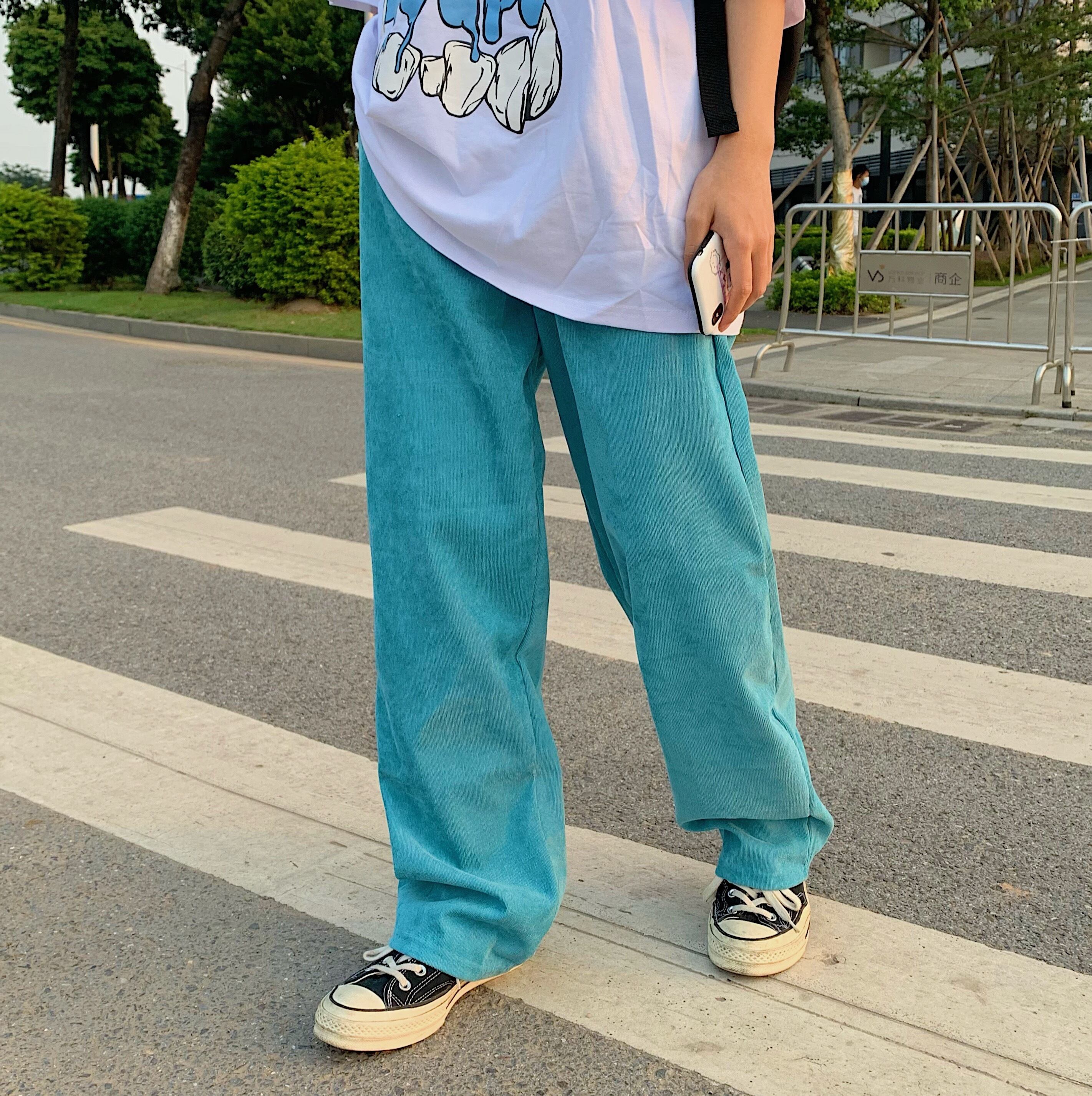 ブルーコーデュロイパンツ ルーズワイドレッグ ワイドパンツ デーモン30959959075