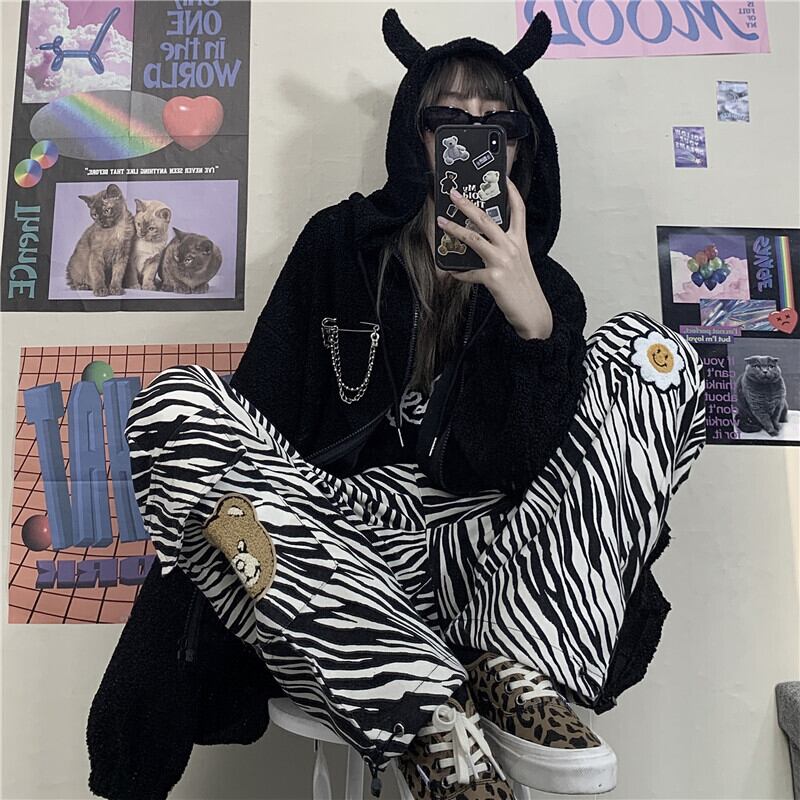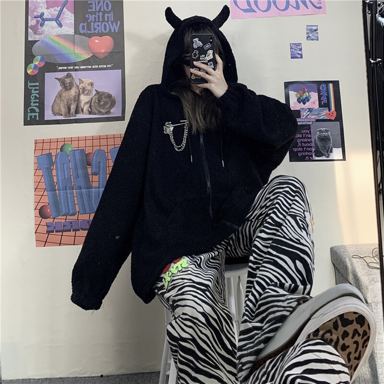 秋物ウィンターダークフードジッパーウールコート レディースルーズカーディガン オータム 冬物 デーモン93118711796