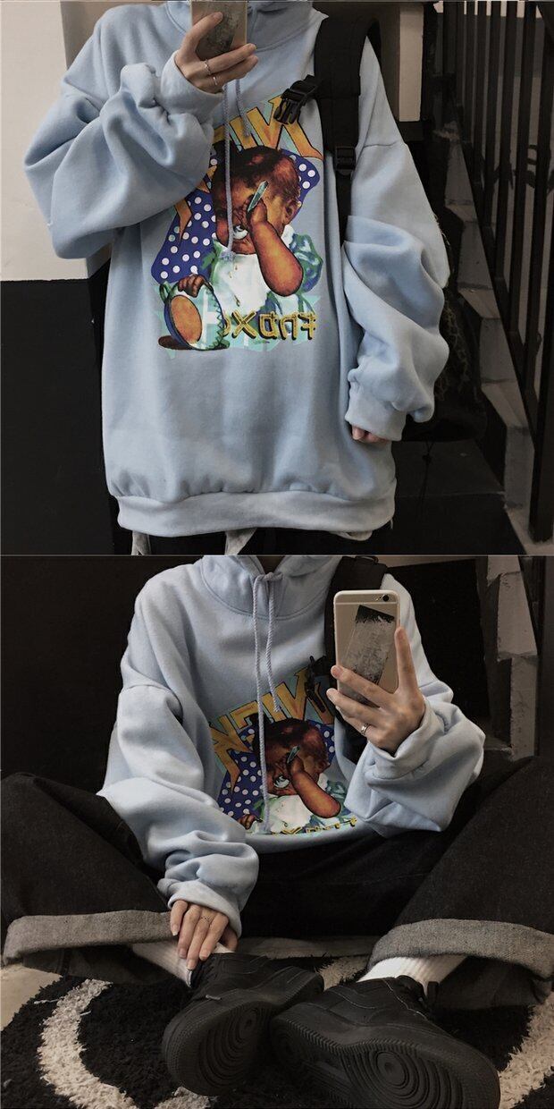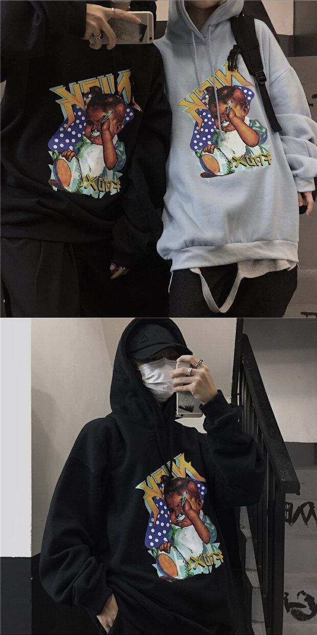 秋物ウィンターセーター レディース韓国ファッショントレンドプリントルーズ厚みフードジャケット オータム 冬物 スタイル デーモン34806698289