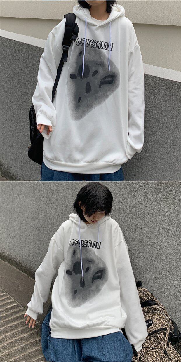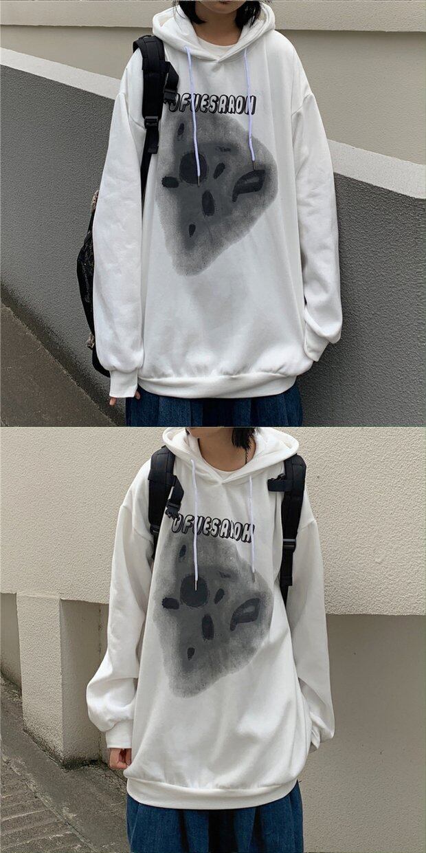 秋物ウィンタージャケット レディース韓国ファッショントレンドスタンダードプリント厚みルーズフードセーター レトロ オータム 冬物 ボーイズ スタイル デーモン75952748163