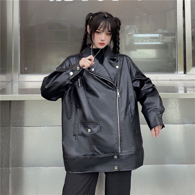 レザージャケット レディース秋物韓国ファッショントレンドスタンダードブラックルーズ レトロ オータム ボーイズ スタイル デーモン24650896895