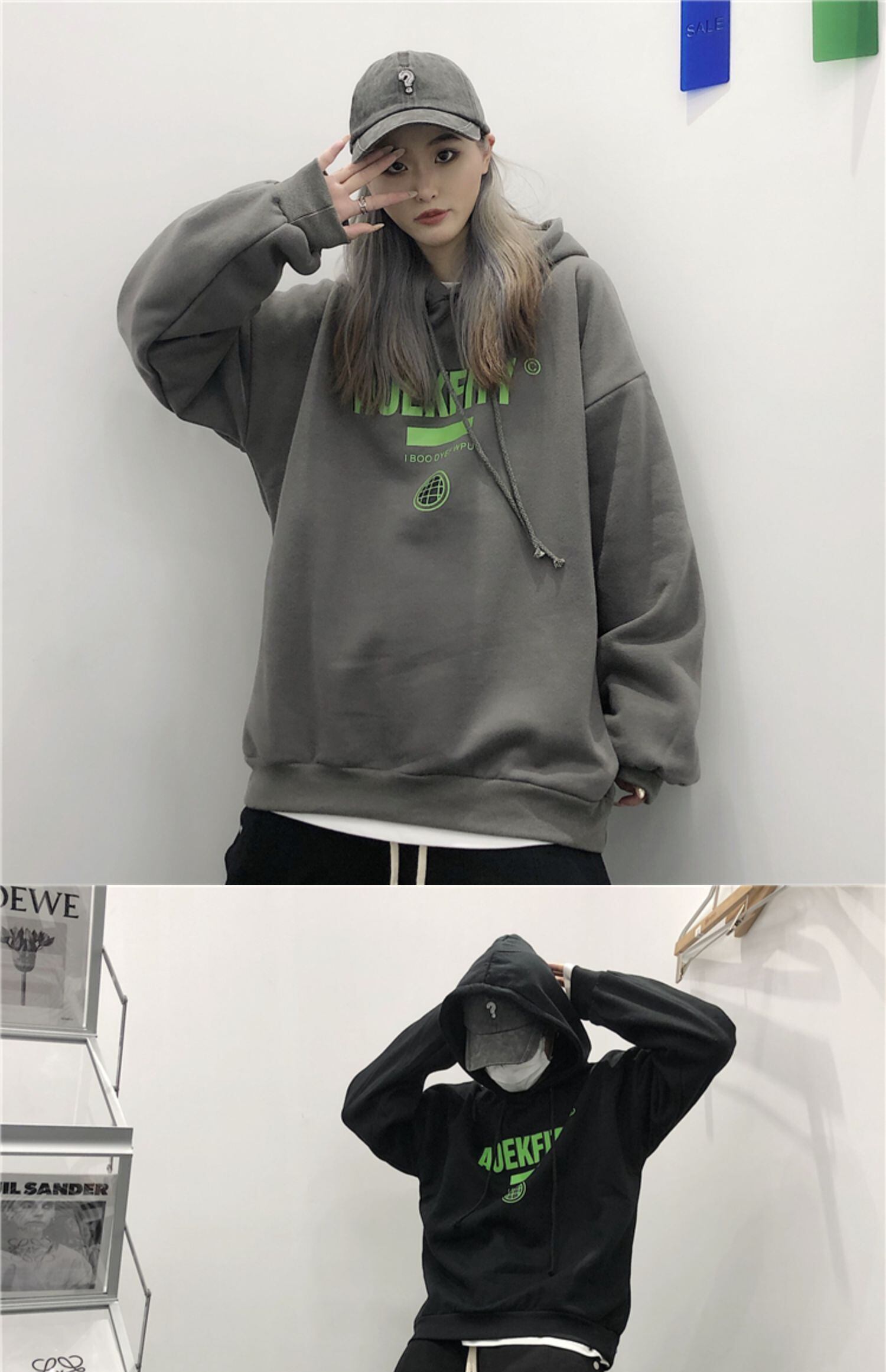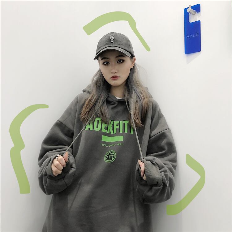 フードトップス レディース秋物ウィンター韓国ファッショントレンドプリントルーズ厚みセーター ロング オータム 冬物 ボーイズ スタイル 長袖 デーモン87212902133