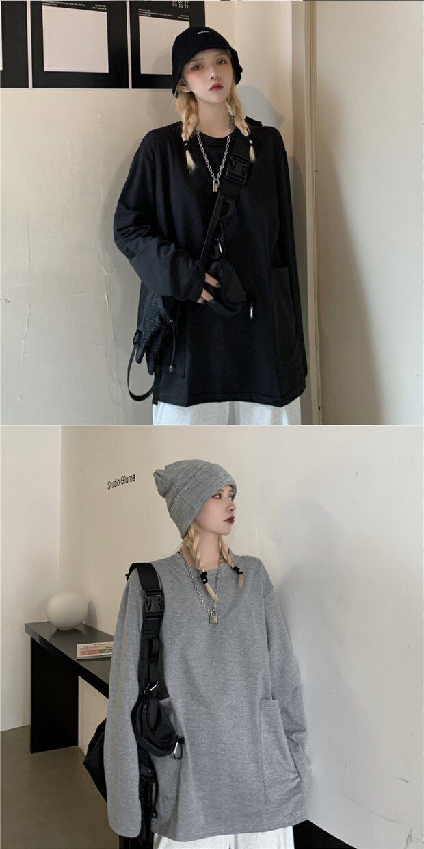 秋物ジャケット レディース韓国ファッショントレンドスタイルソリッド カラールーズセーター ロング 原宿 オータム ソリッドカラー 長袖 デーモン97568001855