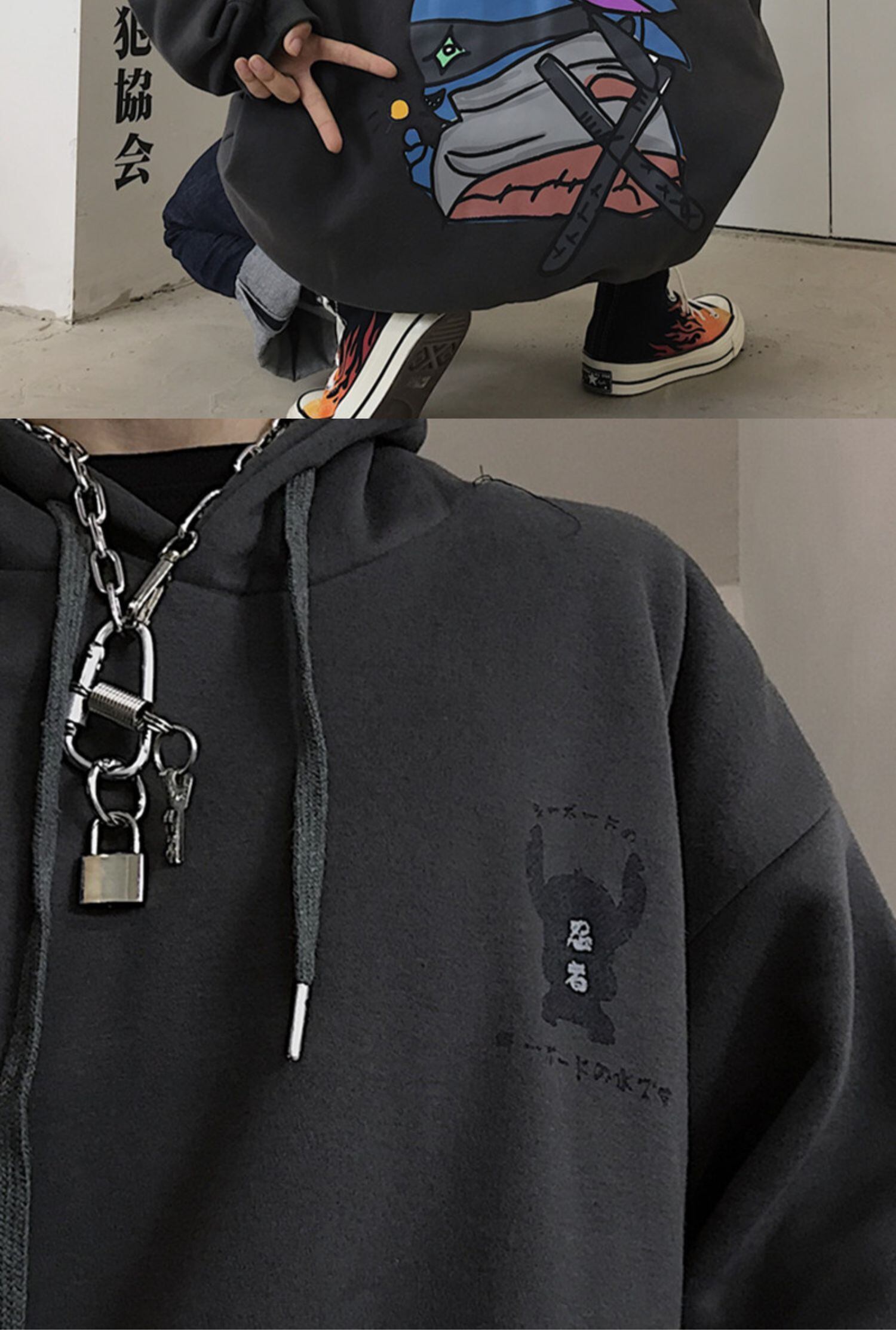フードセーター レディース秋物ウィンター韓国ファッショントレンドスタンダードプリント厚みルーズコート レトロ オータム 冬物 ボーイズ スタイル デーモン41324303151