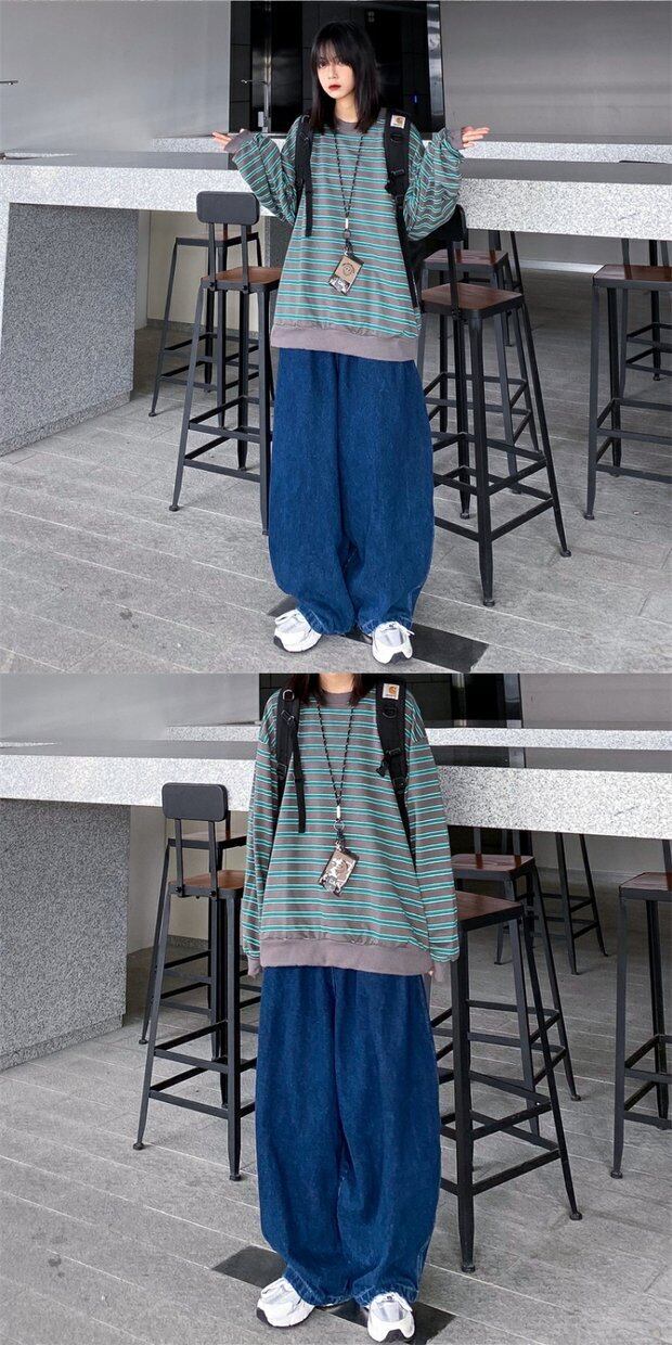 秋物ジャケット 韓国ファッショントレンドストライプルーズラウンドネック長袖スリーブセーター ロング オータム Oネック ボーイズ スタイル デーモン12025681863
