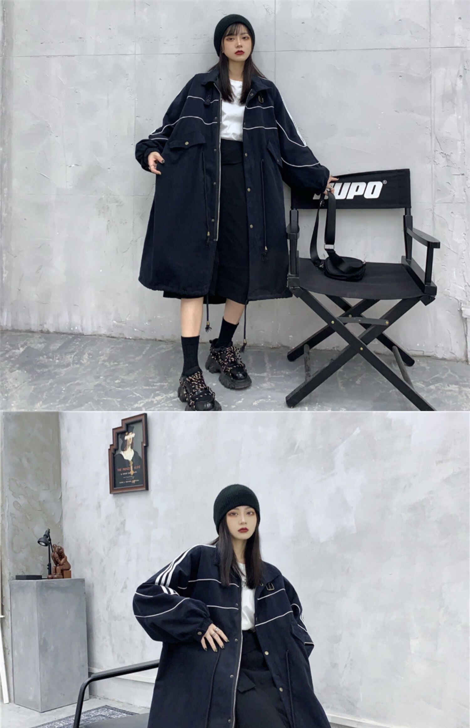 秋物韓国ファッショントレンドスタンダードコート ルーズジャケット レトロ オータム ボーイズ スタイル ミドル丈 デーモン1081195075