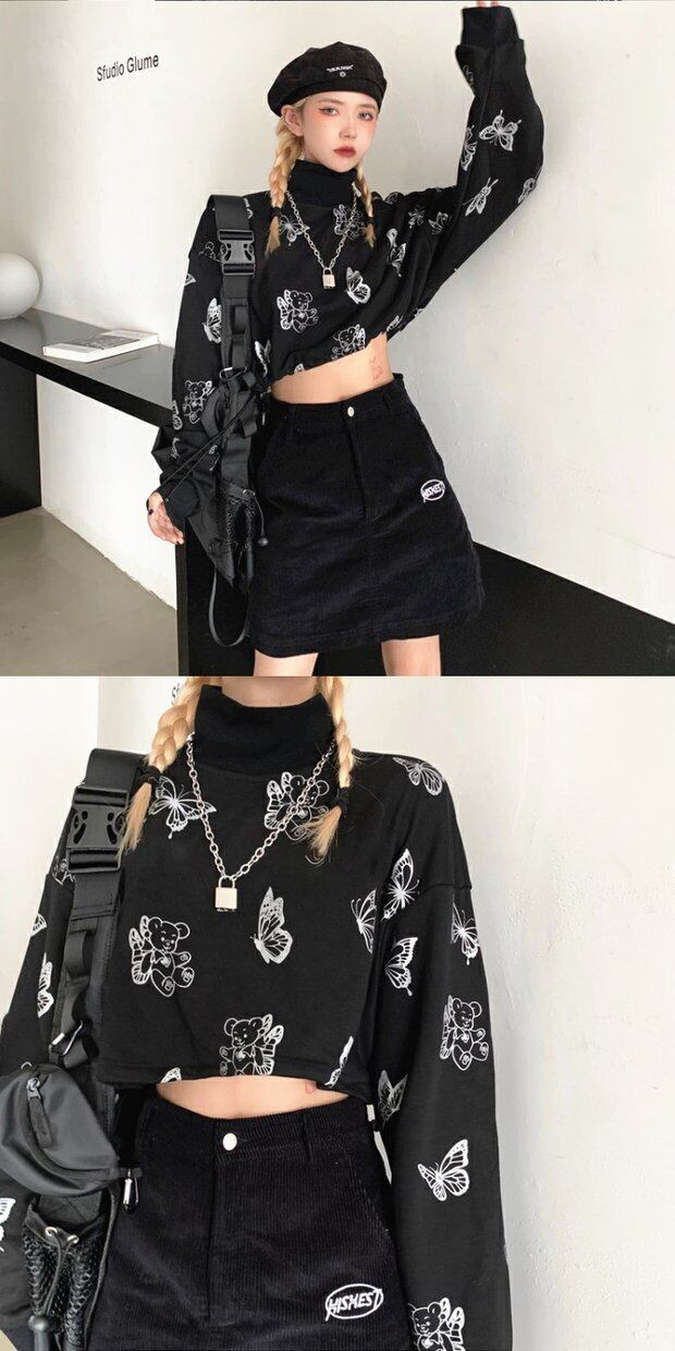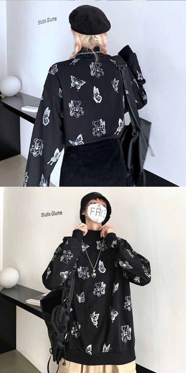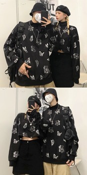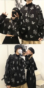 セーター 韓国ファッショントレンドプリント柄ショートルーズジャケット レディース ストリート オータム 秋物 ウィンター 冬物 スタイル デーモン80895033844